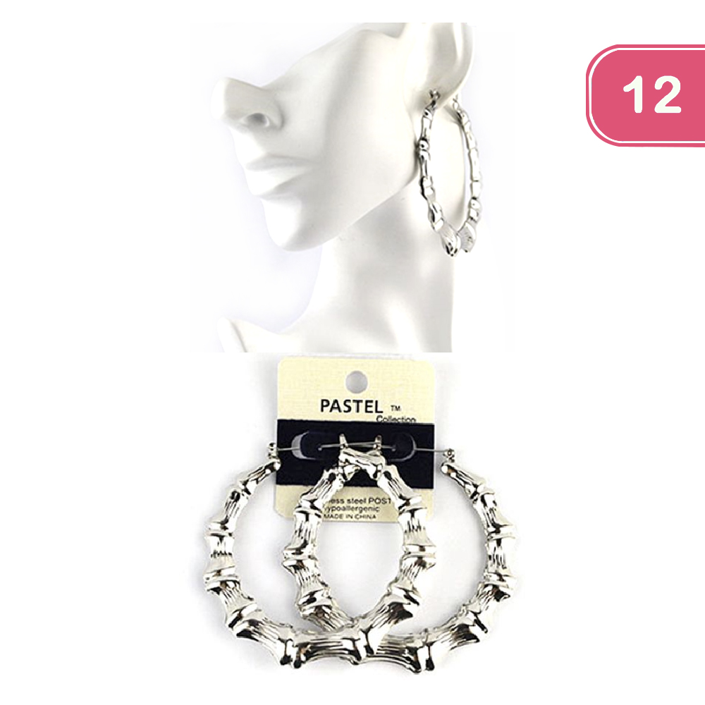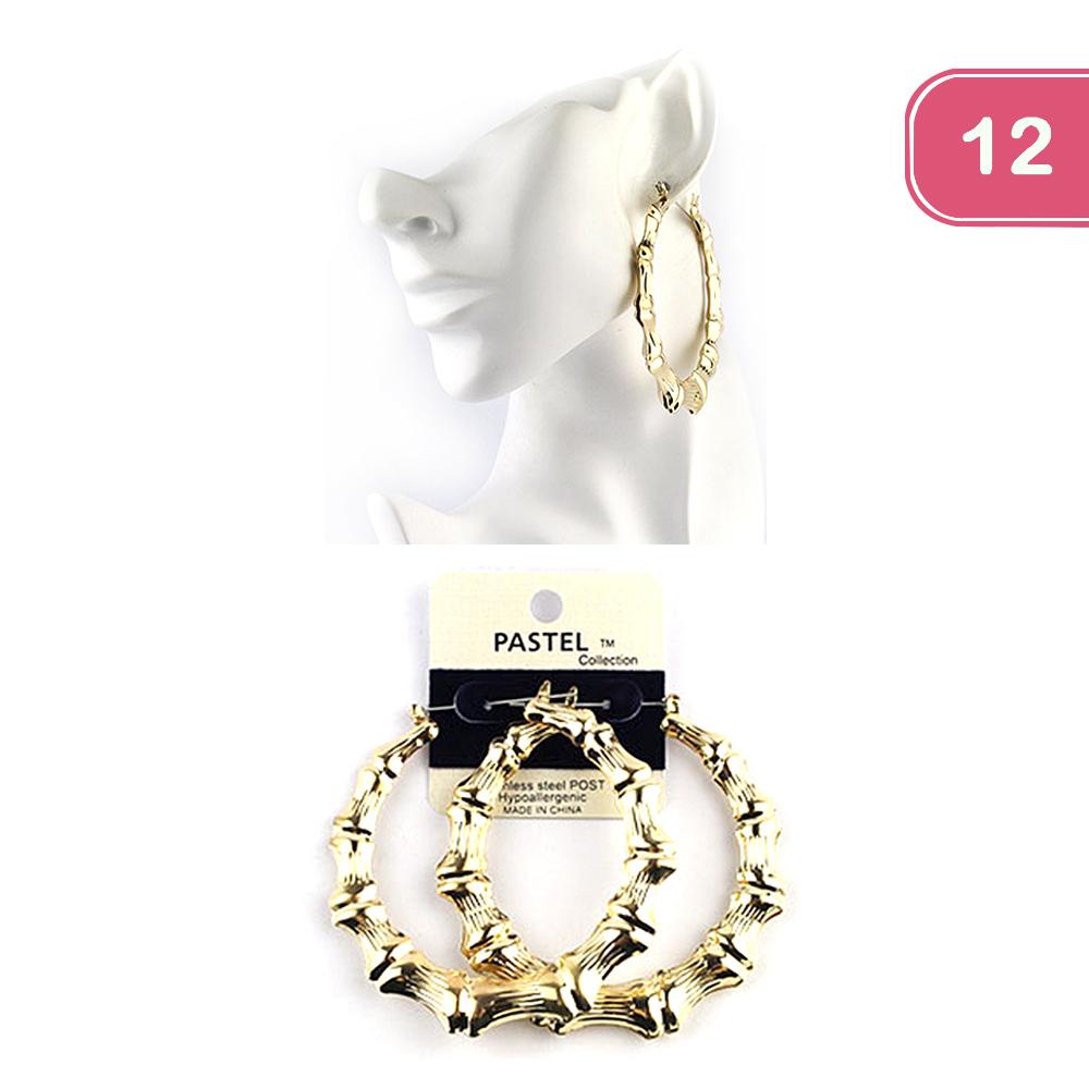 FASHION METAL BAMBOO HOOP 3.25 INCH EARRING (12 UNITS)