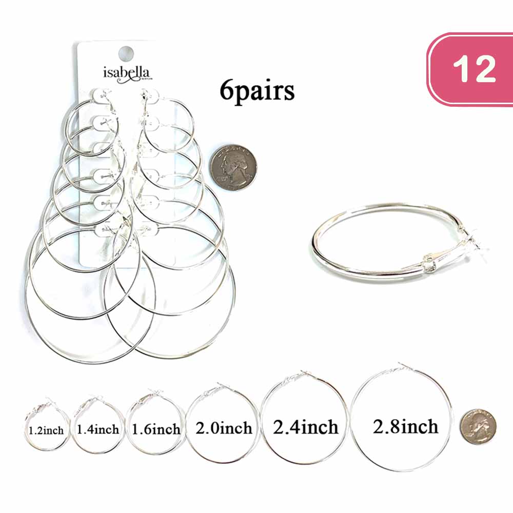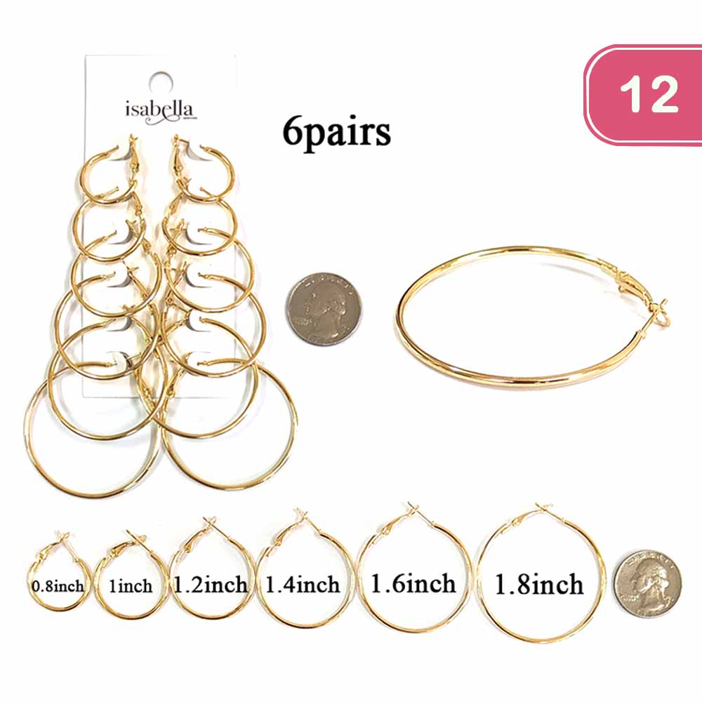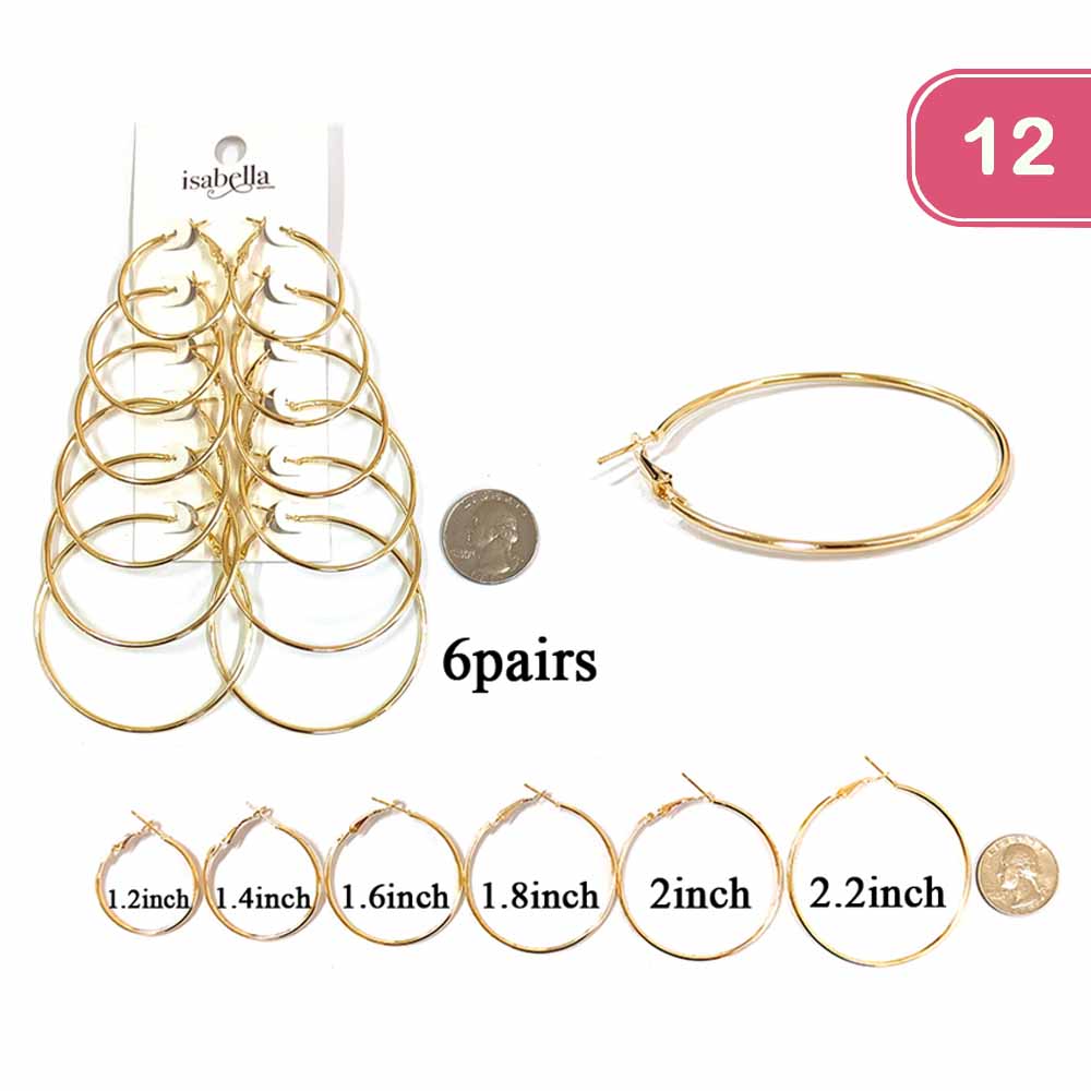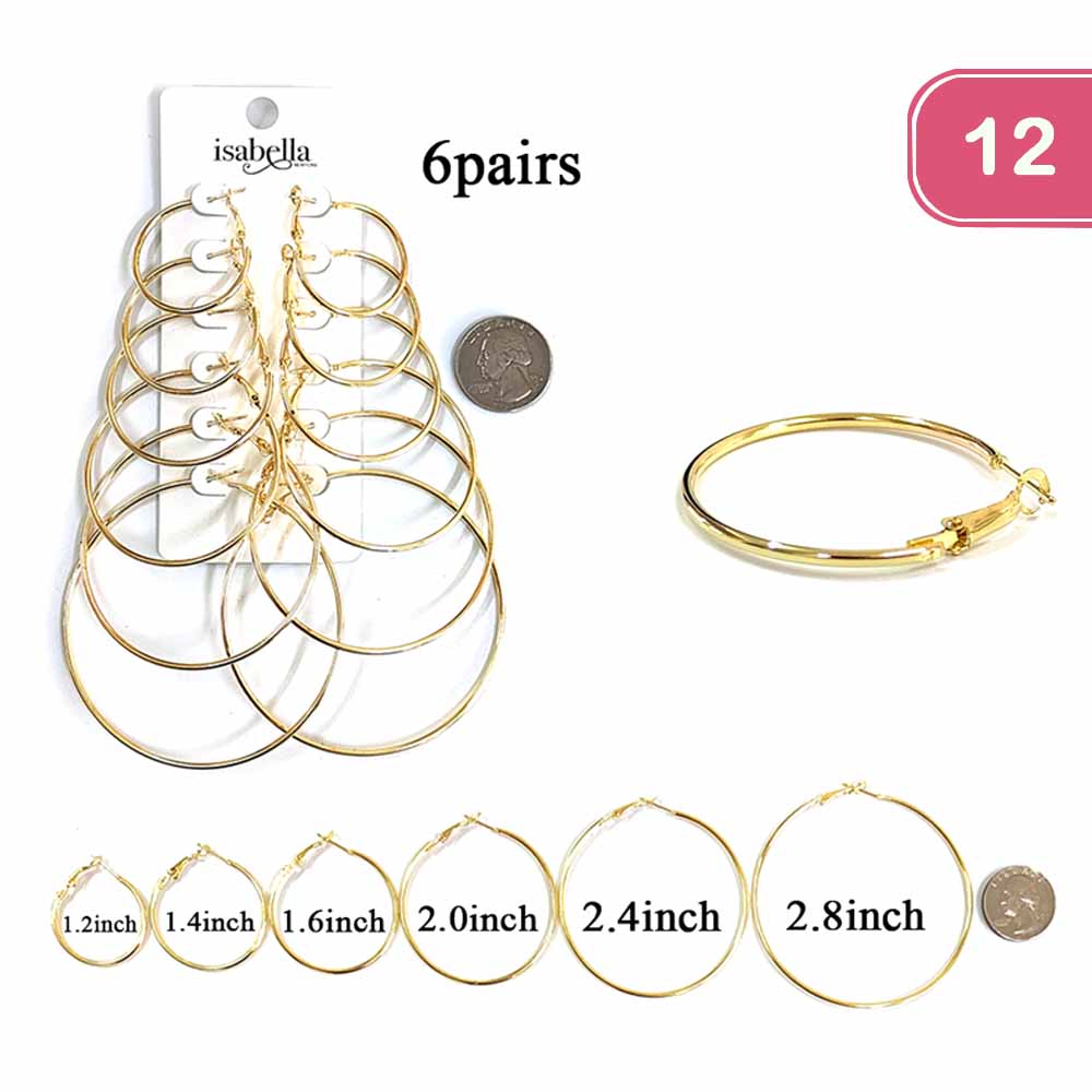 FASHION METAL HOOP 6 PAIR EARRING SET (12 UNITS)