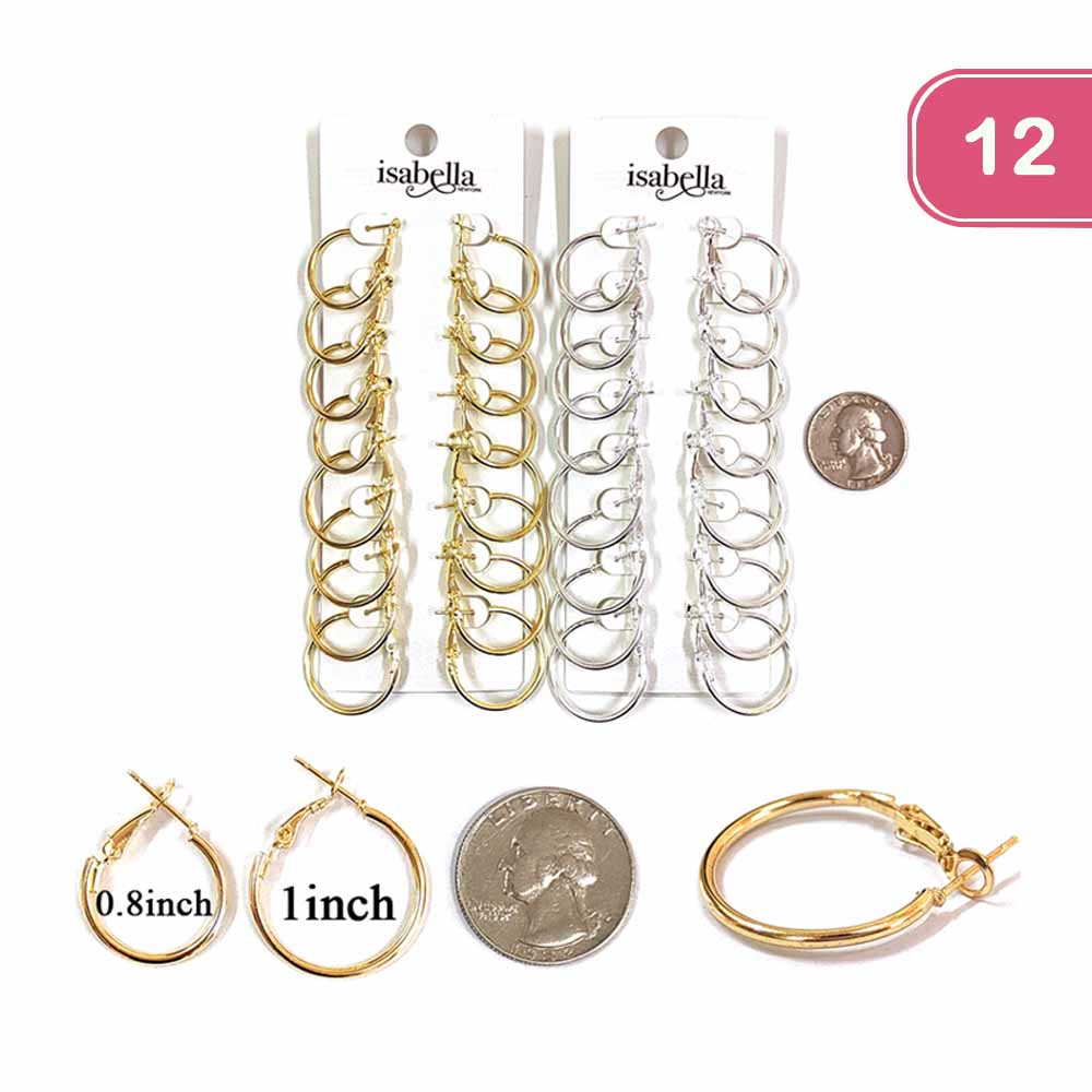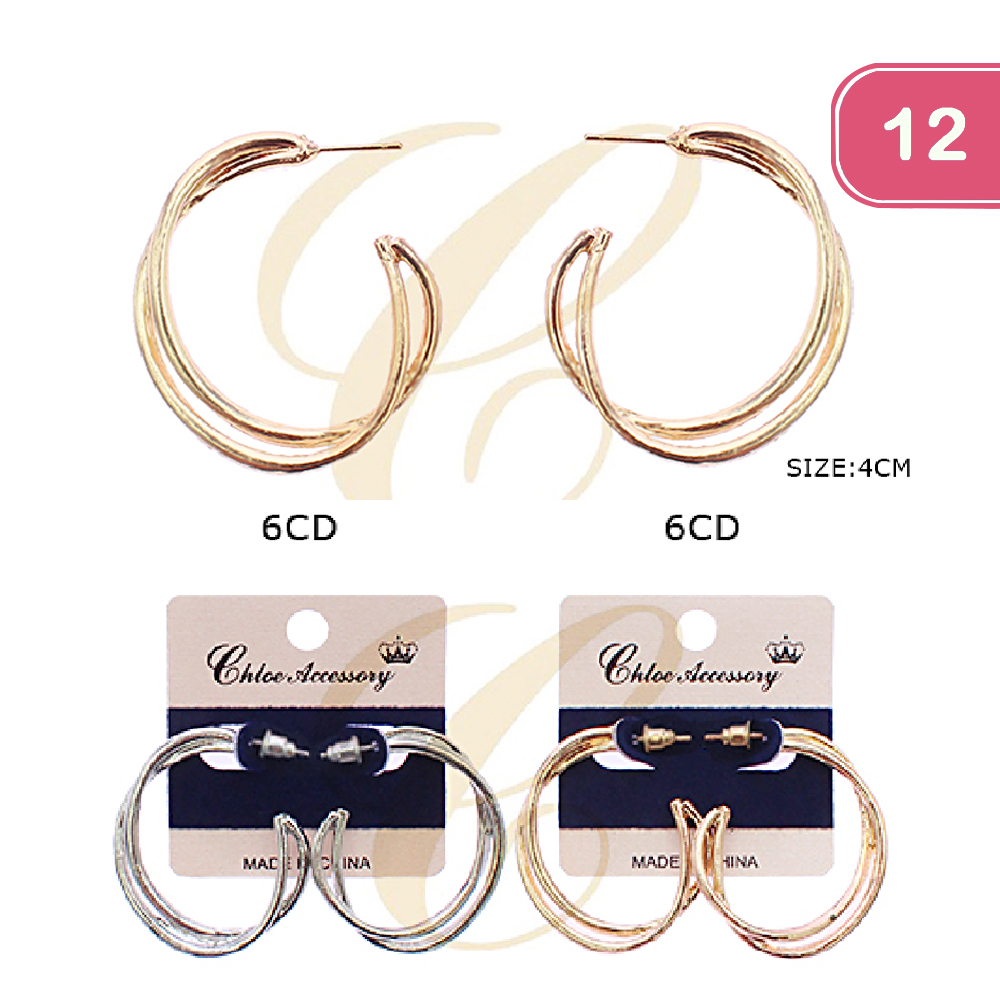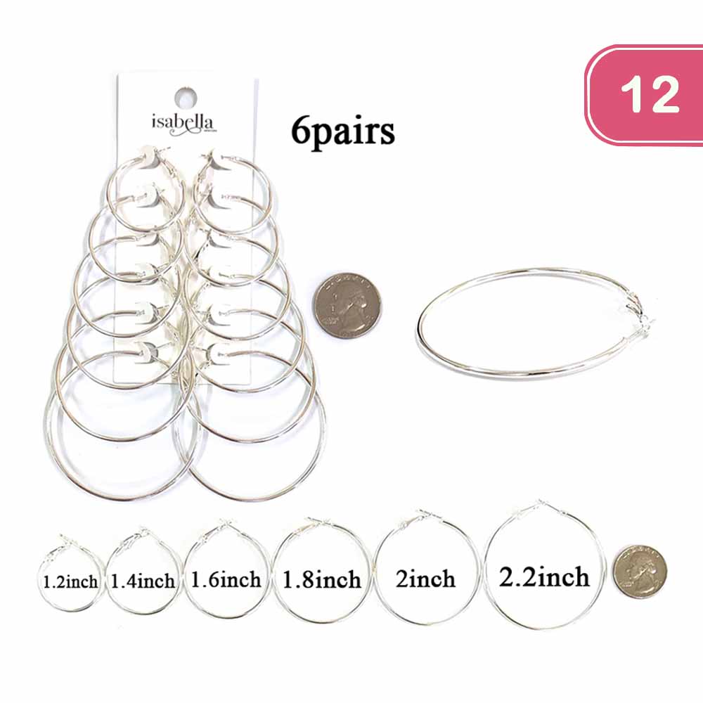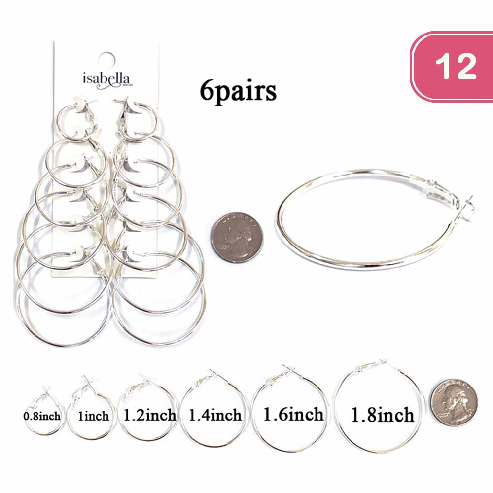 FASHION METAL HOOP 6 PAIR EARRING SET (12 UNITS)