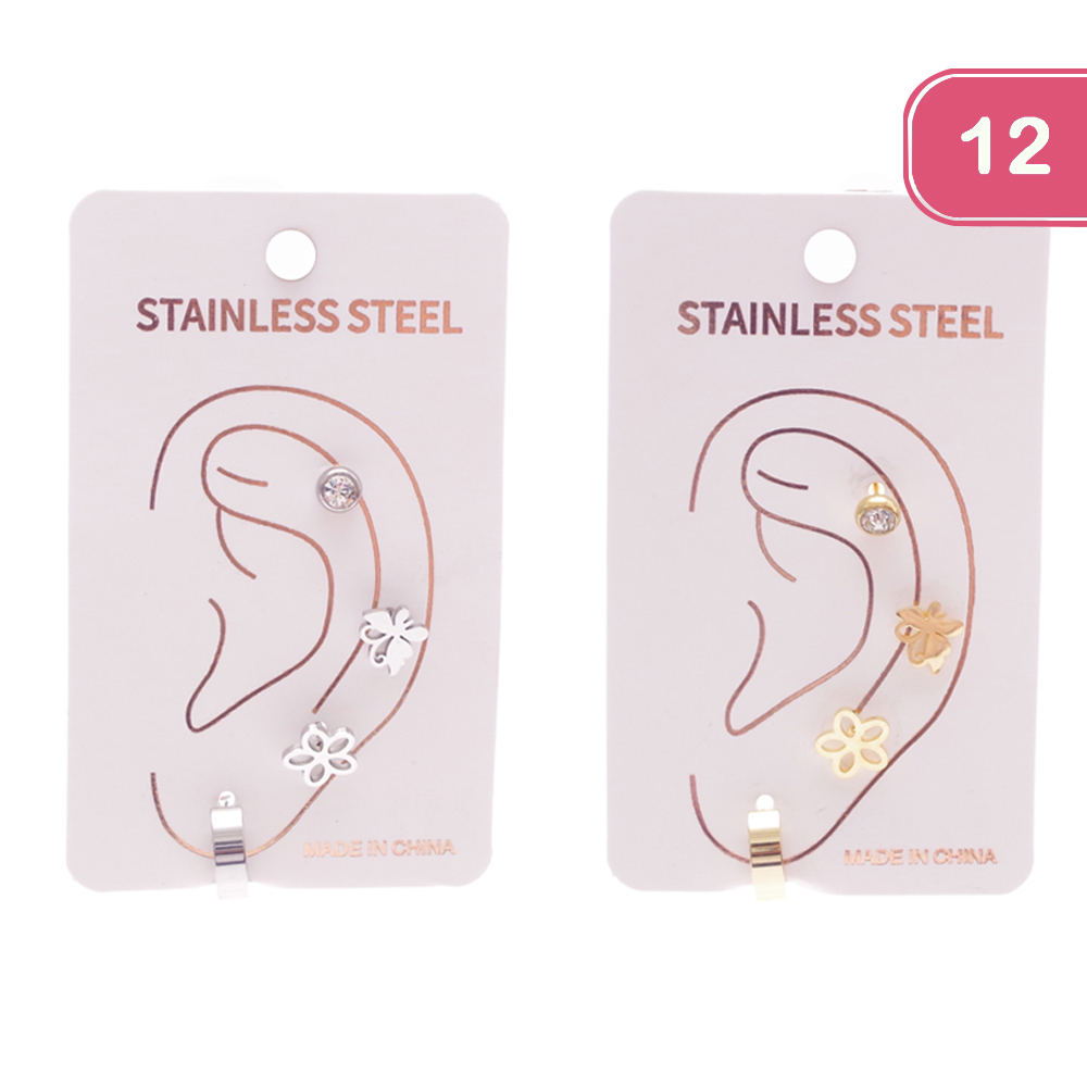 FASHION STAINLESS STEEL HUGGIE EAR CUFF (12 UNITS)