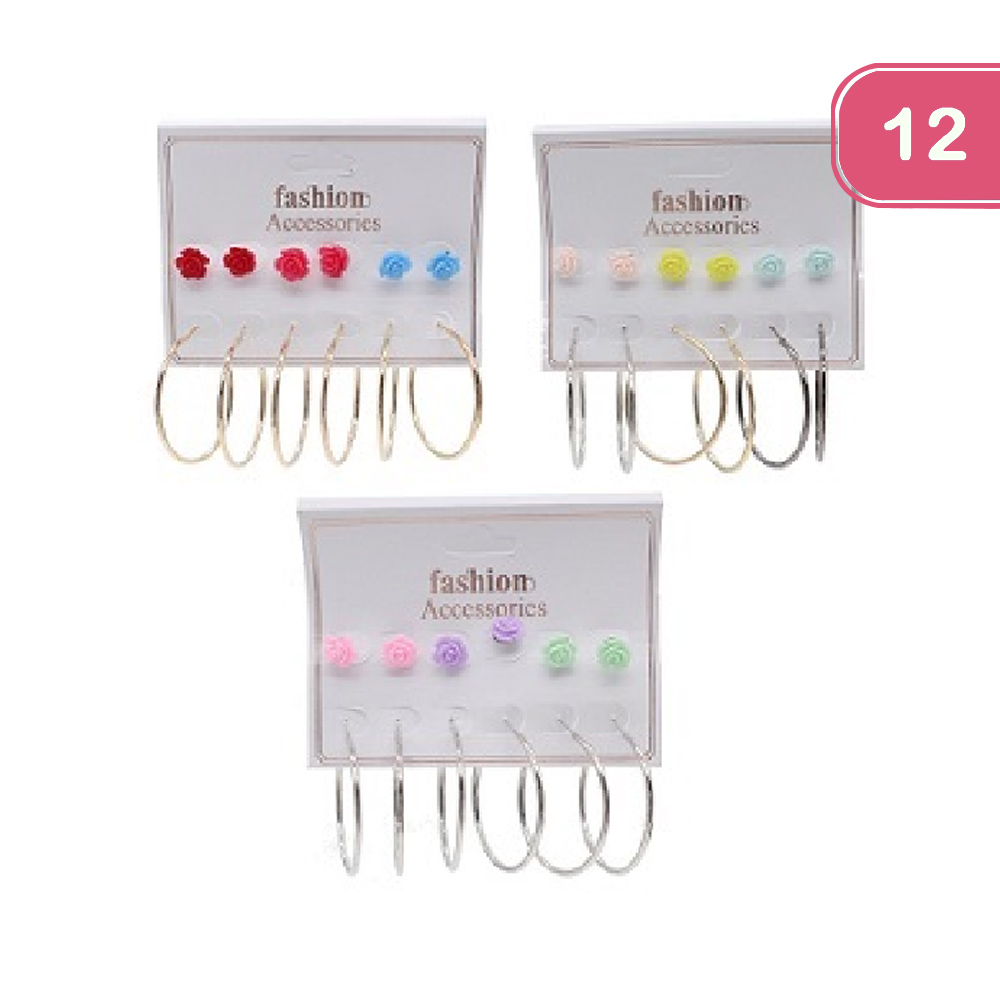 FASHION 6 PAIR STUD HOOP EARRING (12UNITS)