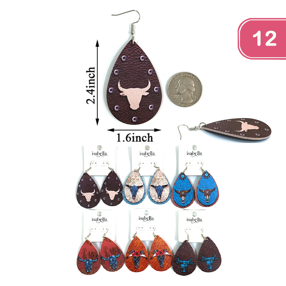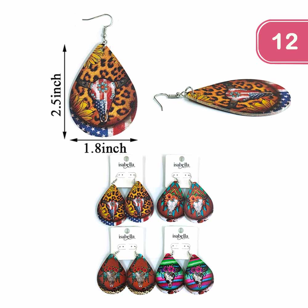 FASHION BULL SKULL WESTERN EARRING (12UNITS)