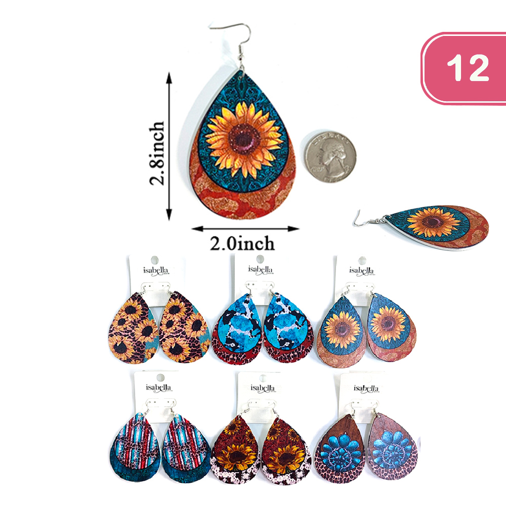 FASHION WESTERN BULL WITH SUNFLOWER LEOPARD PRINT EARRING(12UNITS)