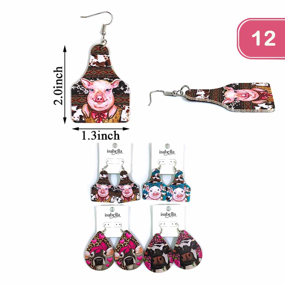 FASHION WOODEN PIG TEARDROP EARRING(12UNITS)