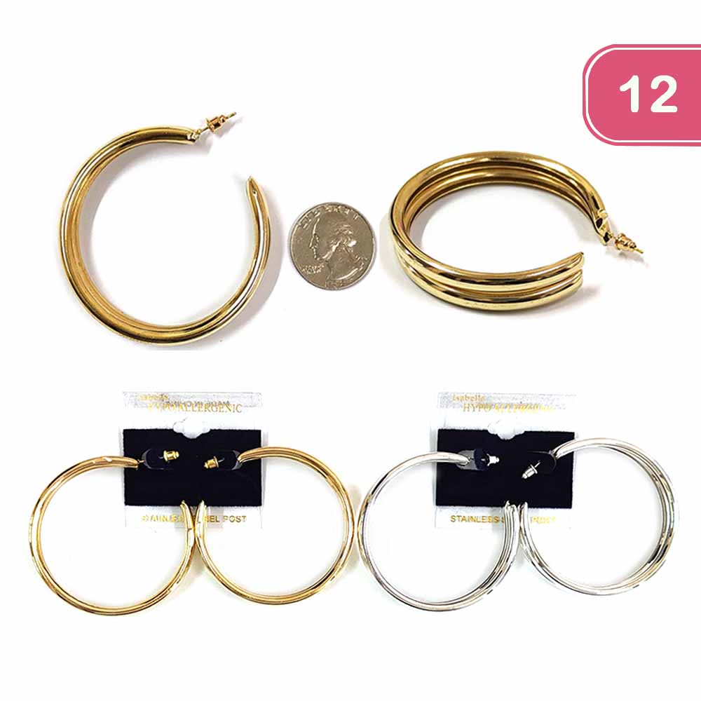 FASHION 3 PAIR HOOP EARRING 12 UNITS