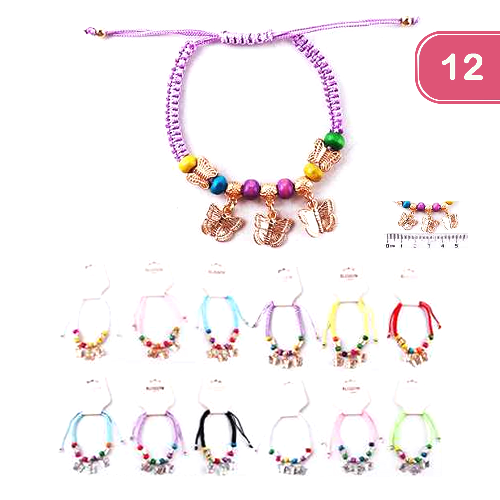 FASHION MIX BEAD AND CORD BUTTERFLY BRACELET (12UNITS)