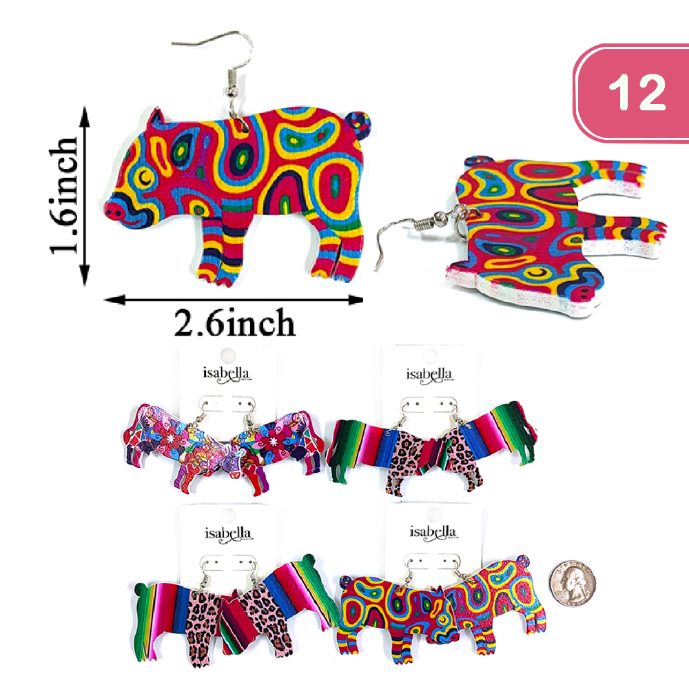 FASHION COLORFUL WOODEN PIG EARRING(12UNITS)