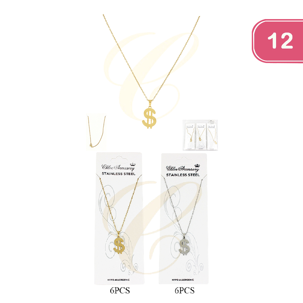 FASHION STAINLESS STEEL MONEY SIGN NECKLACE(12UNITS)