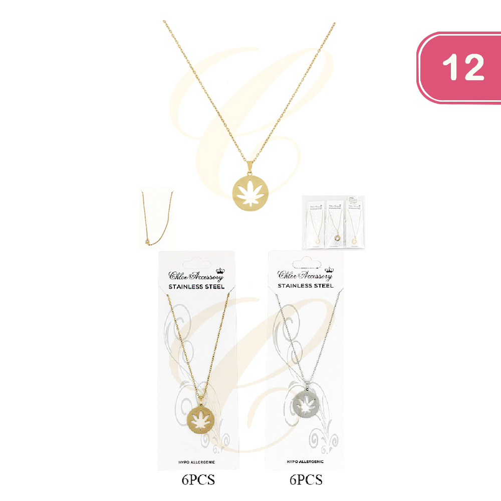 FASHION STAINLESS STEEL WEED NECKLACE (12UNITS)