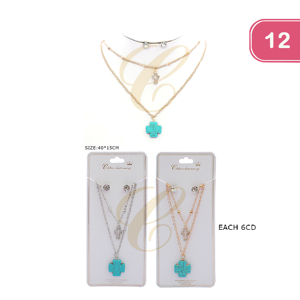 FASHION TWO LAYER STONE CROSS NECKLACE (12UNITS)