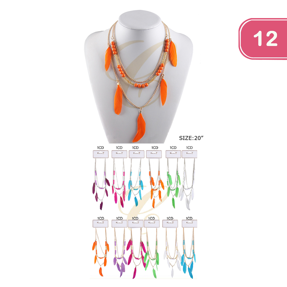 FASHION BEADED LAYERED FEATHE NECKLACE (12UNITS)