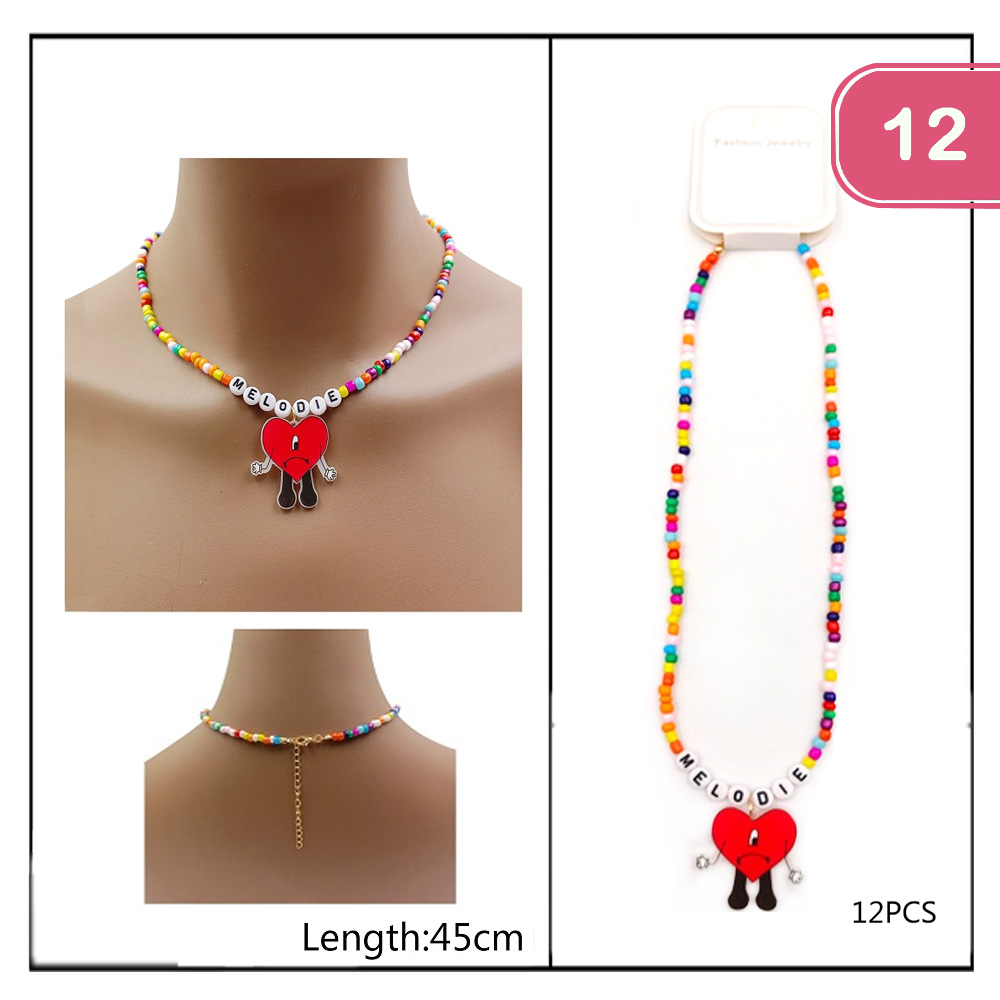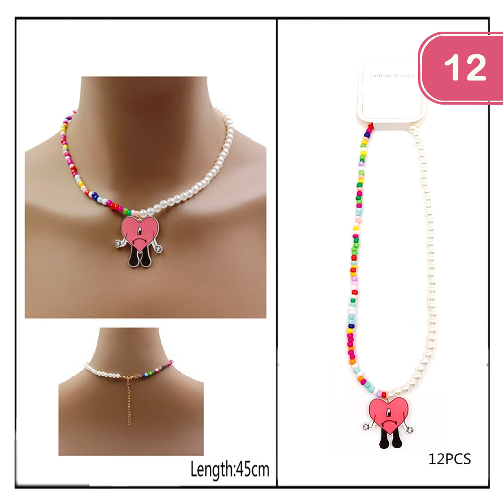 FASHION HEART BEAD NECKLACE (12UNITS)
