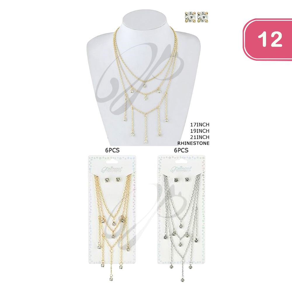 FASHION RHINESTONE NECKLACE EARRING SET (12 UNITS)