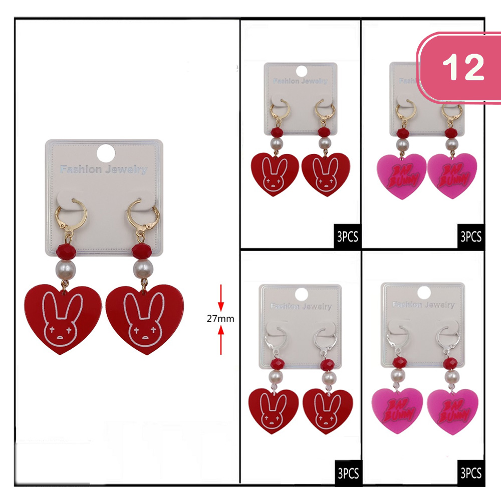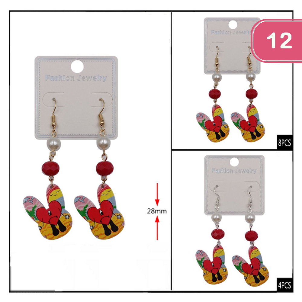 FASHION HEART BUNNY DANGLE EARRING (12UNITS)