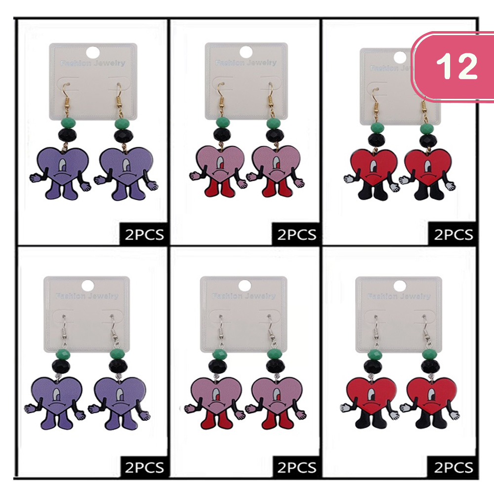 FASHION HEART DANGLE EARRING (12 UNITS)