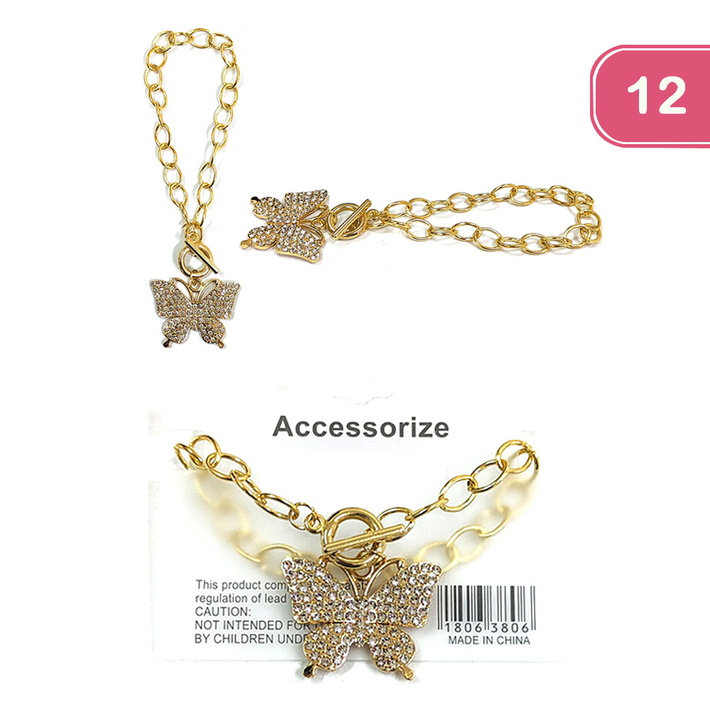 FASHION RHINESTONE BUTTERFLY CHARM BRACELET (12 UNITS)