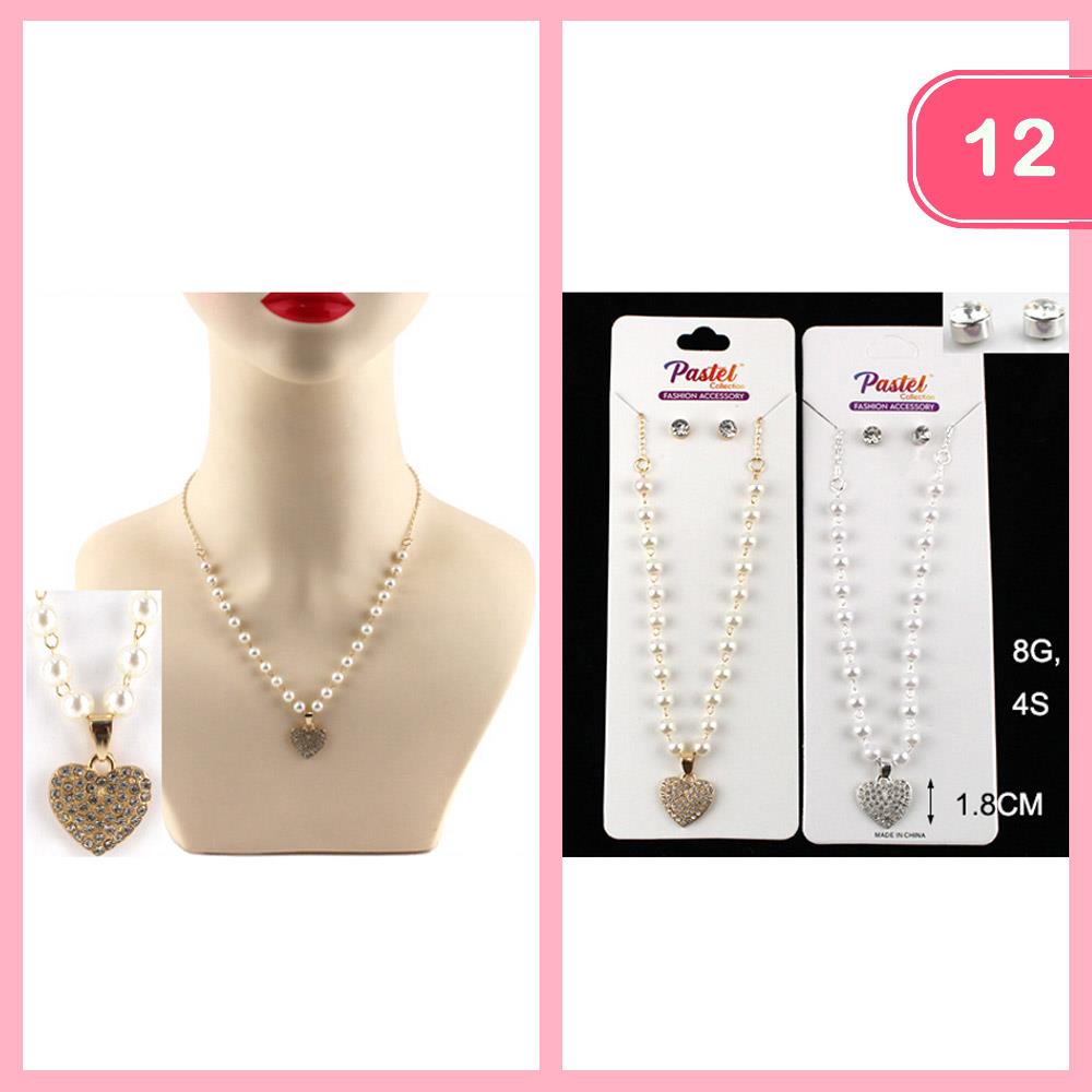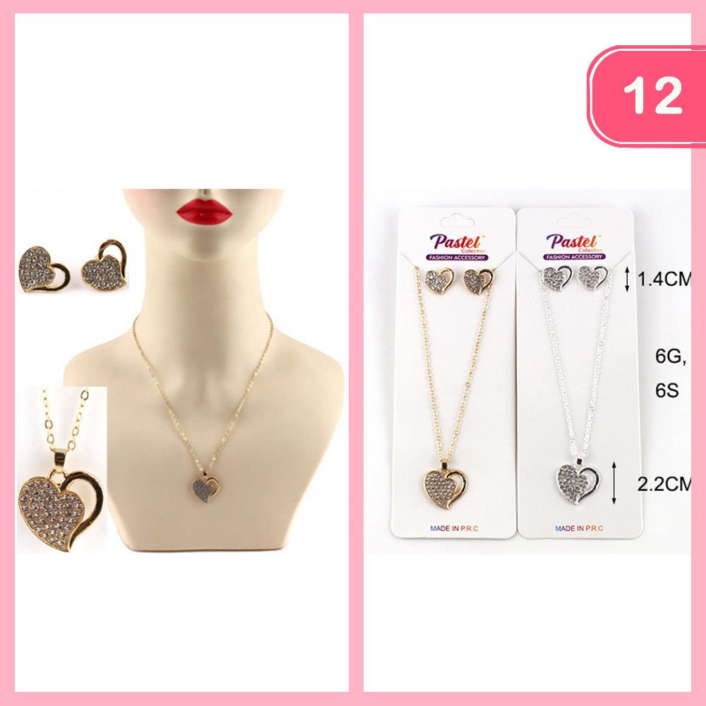 RHINESTONE HEART PENDANT EARRING SET NECKLACE (12 UNITS)
