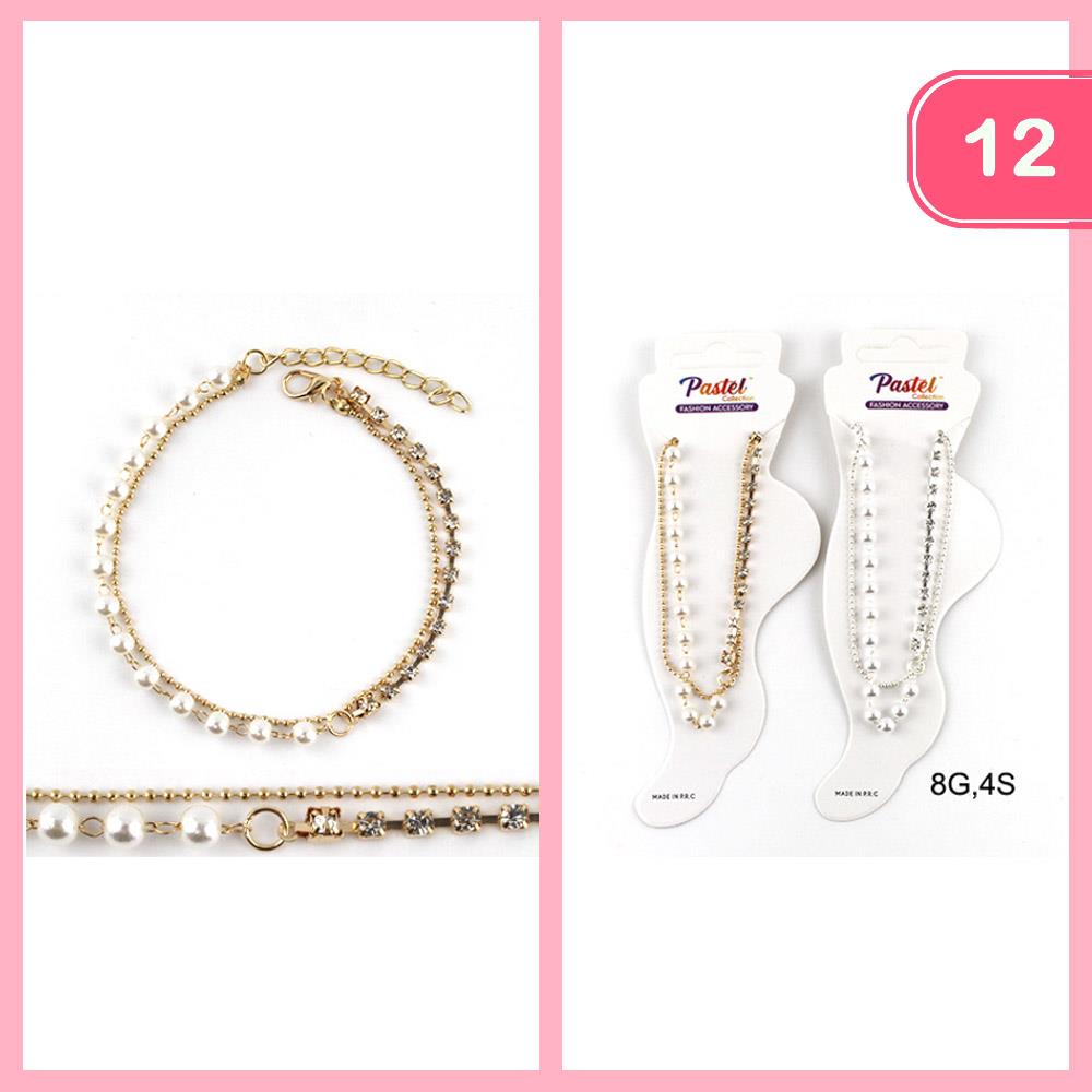 STACKABLE PEARL RHINESTONE ANKLET (12 UNITS)