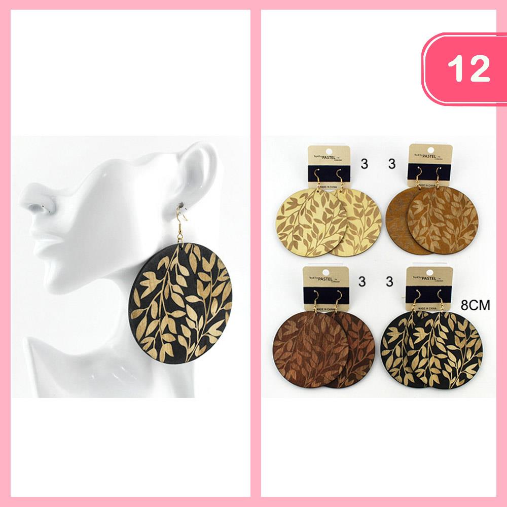 ROUND WOODEN DANGLE EARRING (12 UNITS)