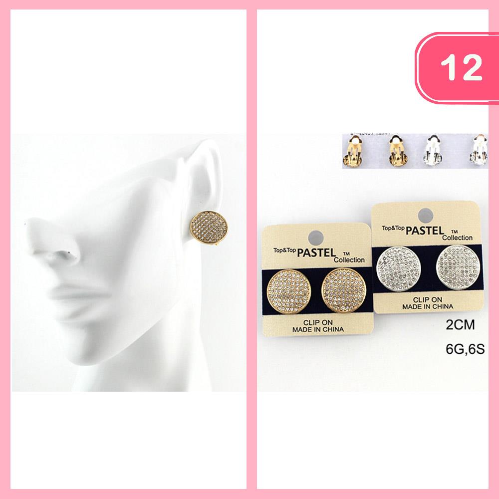 RHINESTONE ROUND CLIP ON EARRING (12 UNITS)