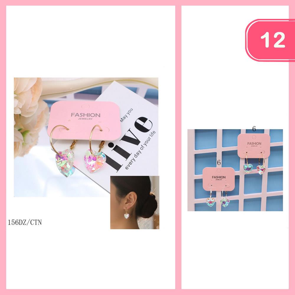 RHINESTONE HEART DANGLE EARRING (12 UNITS)