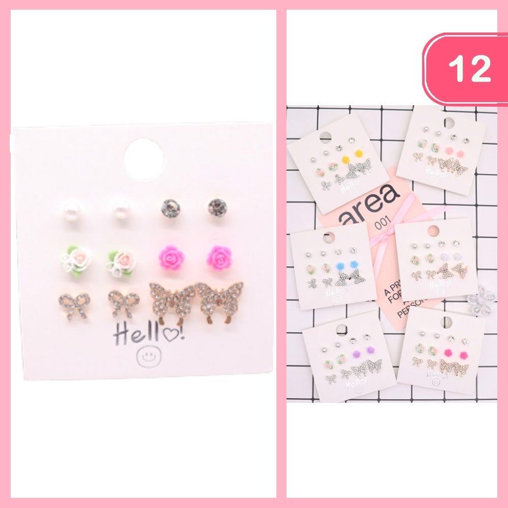 POST FLOWER RHINESTONE BUTTERFLY EARRING SET (12 UNITS)