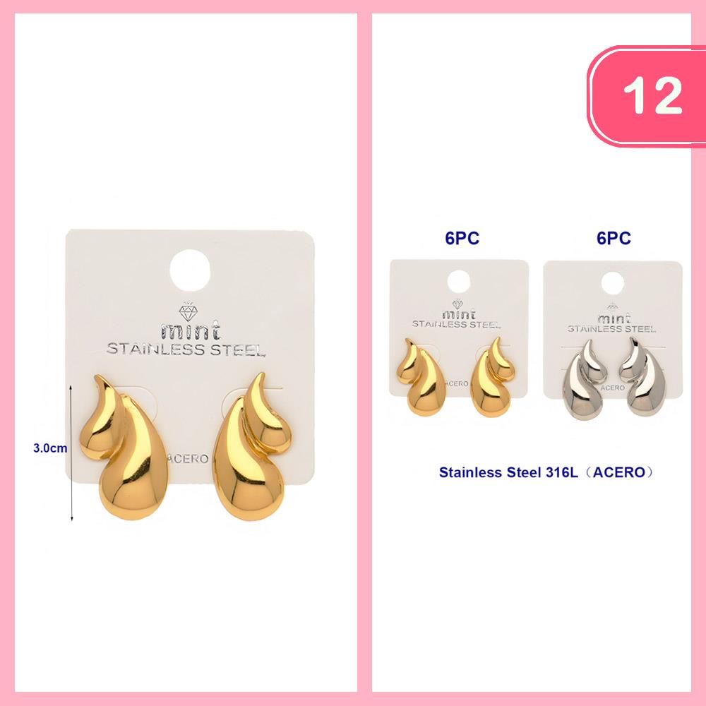 STAINLESS STEEL POST TEARDROP EARRINGS (12 UNITS)