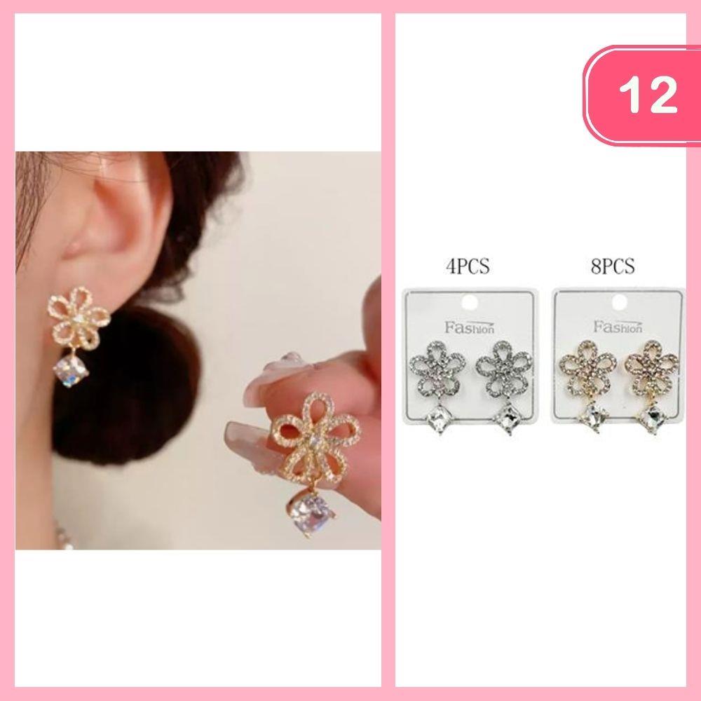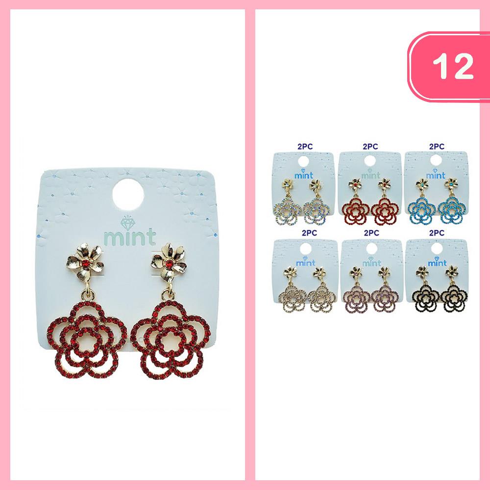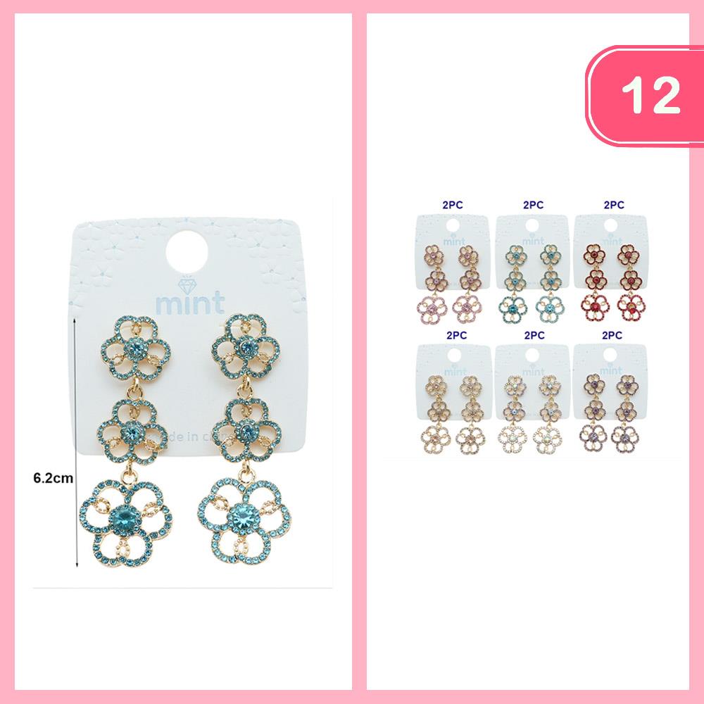 RHINESTONES DANGLE FLOWER EARRINGS (12 UNITS)