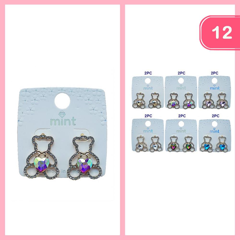 RHINESTONE TEDDY BEAR POST EARRING (12 UNITS)