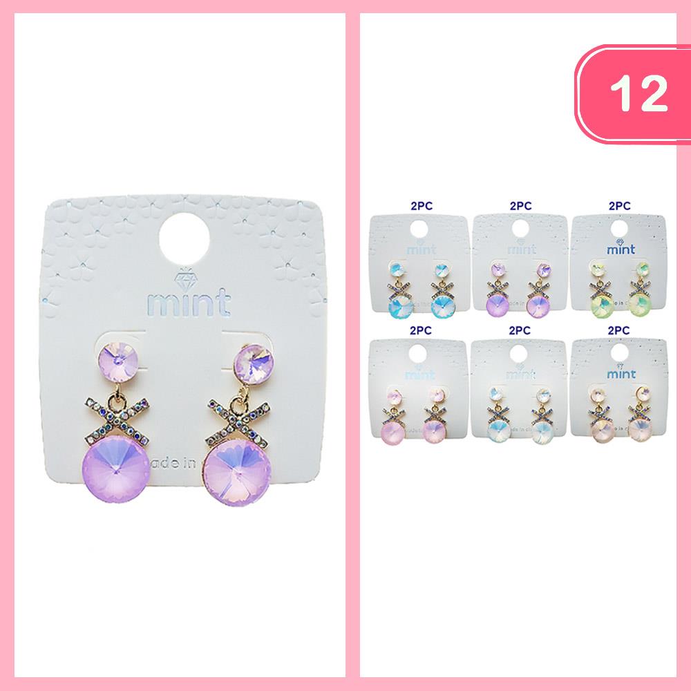 POST RHINESTONE DANGLE EARRINGS (12 UNITS)