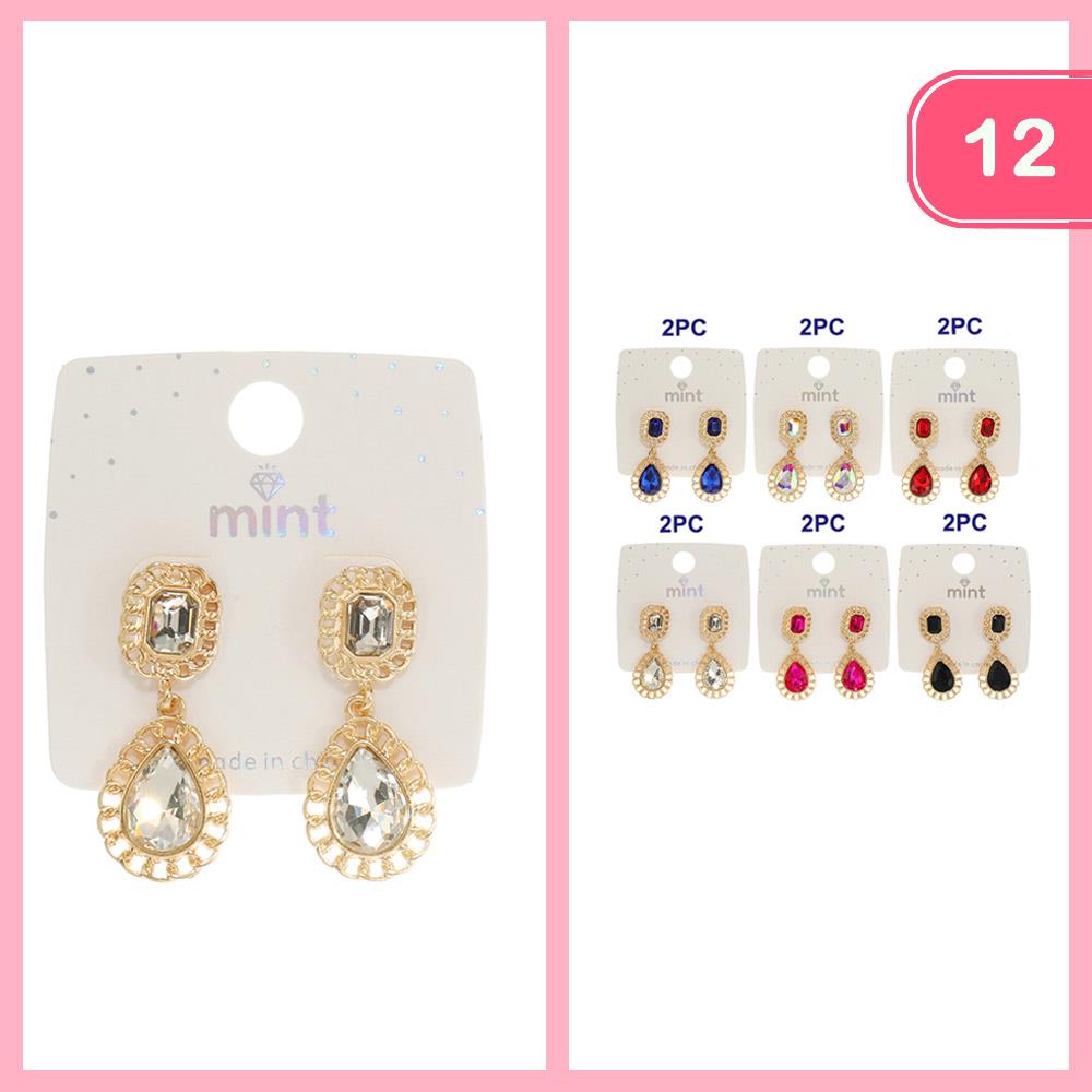 RHINESTONE POST DANGLE EARRINGS (12 UNITS)