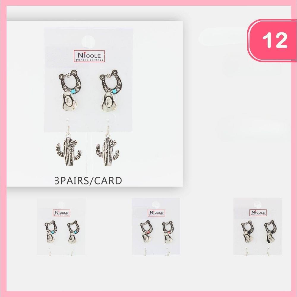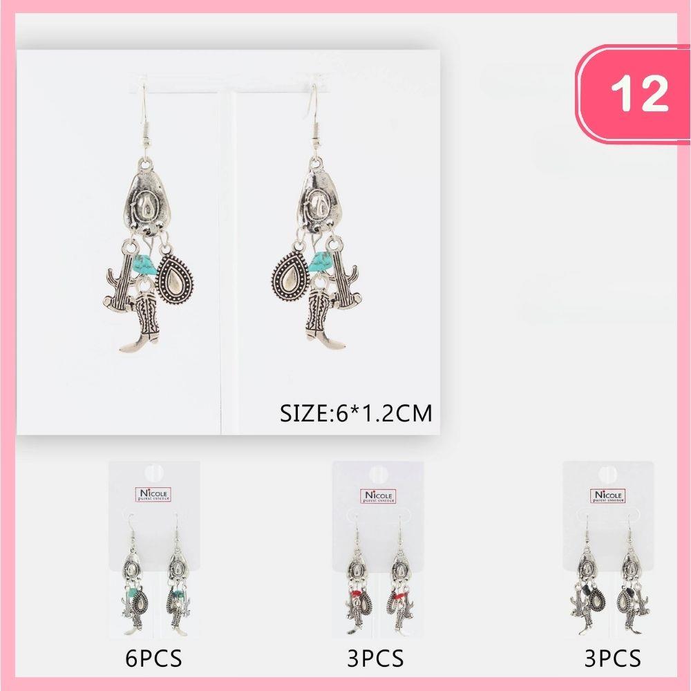 TEXTURED METAL DANGLE EARRINGS (12 UNITS)