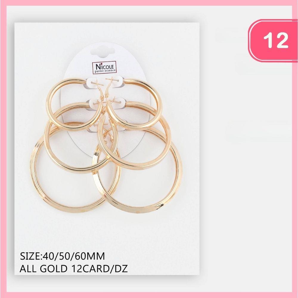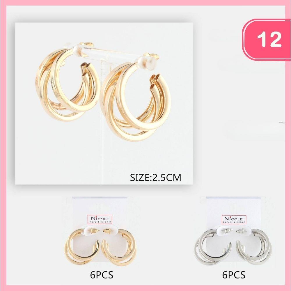 METAL MULTI HOOP EARRING 3 PAIR SET (12 UNITS)