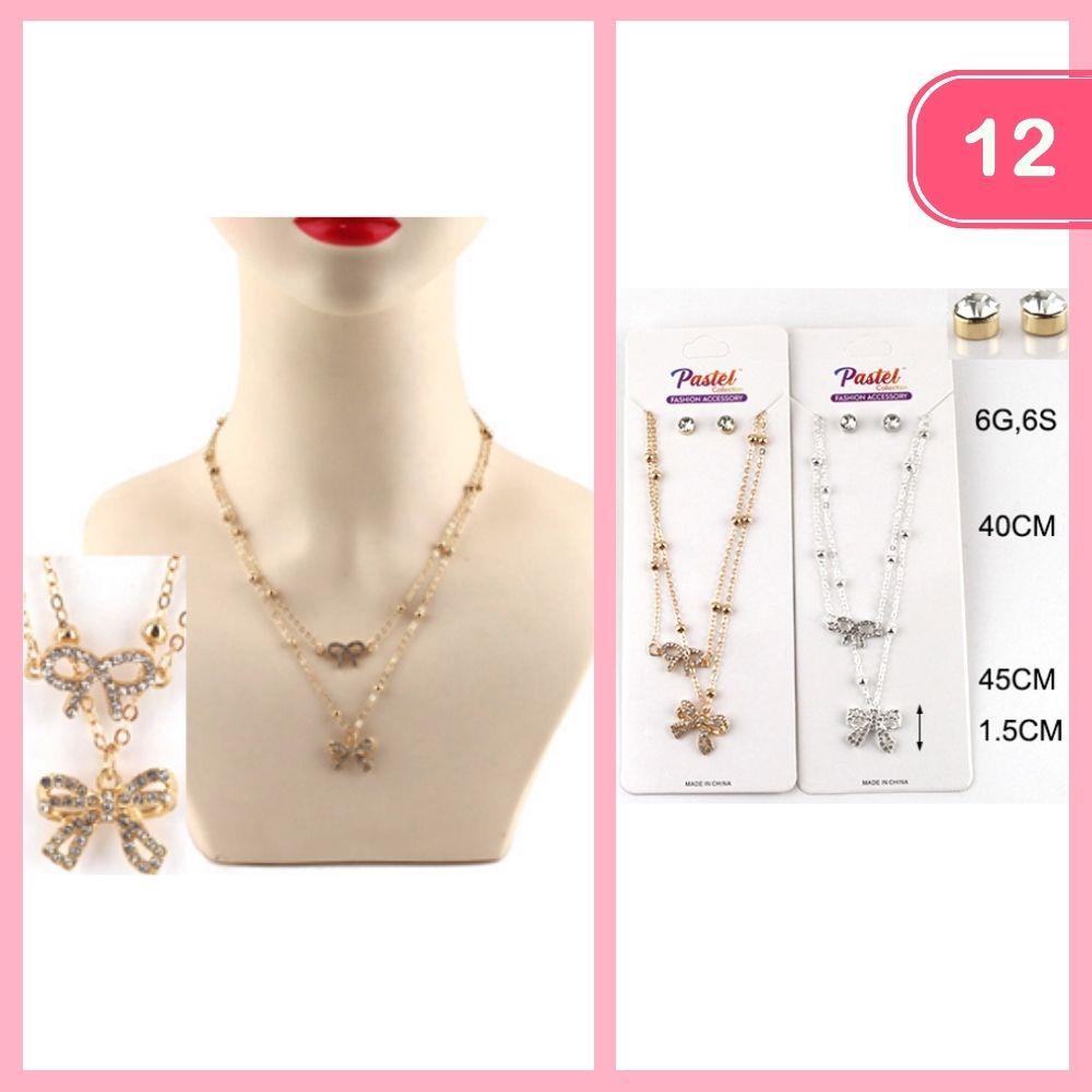 LAYERED BOW PENDANT NECKLACE (12 UNITS)