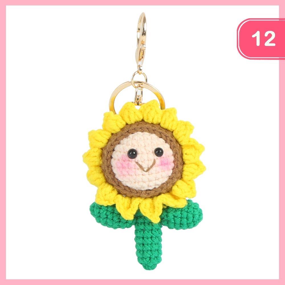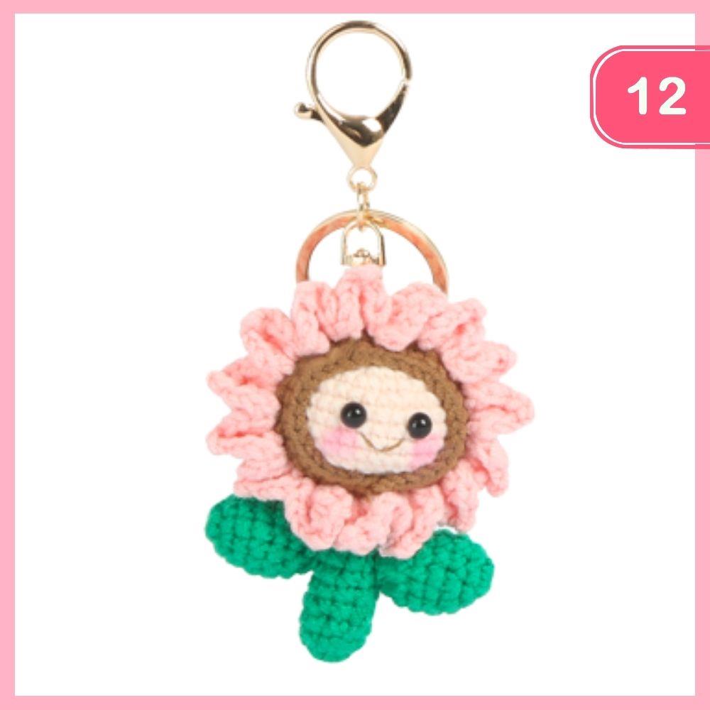 CROCHET FLOWER SMILE FACE BAG CHARM KEYCHAIN (12 UNITS)