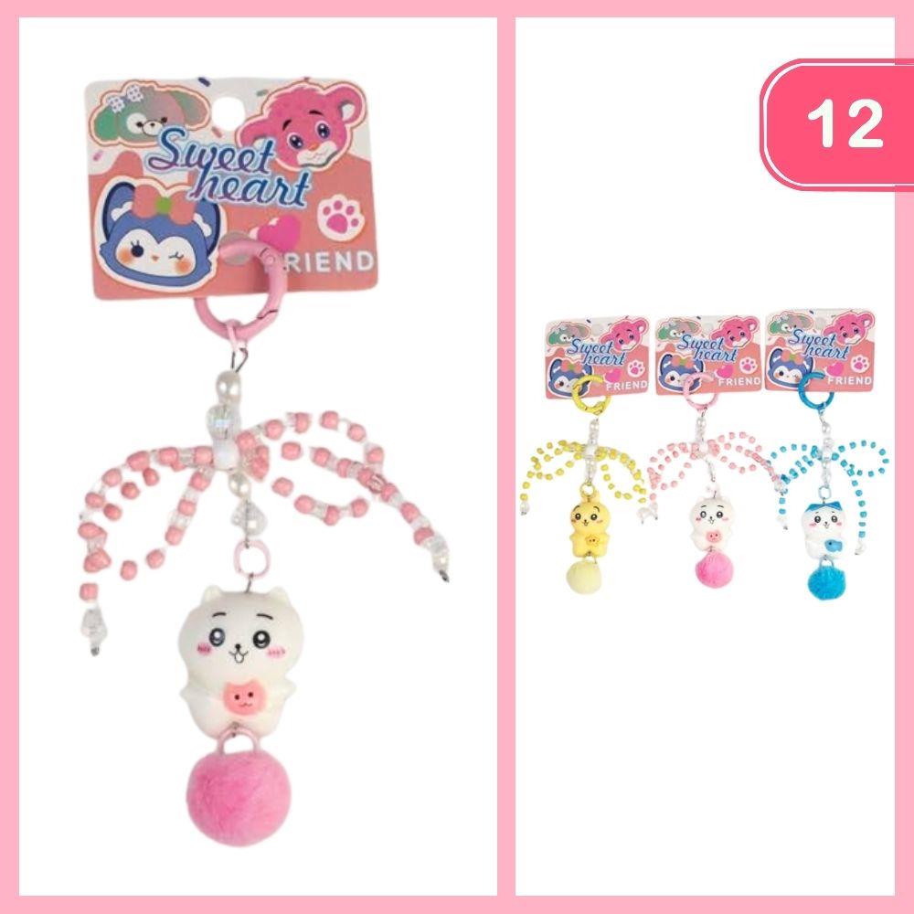 SWEET HEART FRIEND BEADED BOW POM POM ANIMAL KEYCHAIN (12 UNITS)