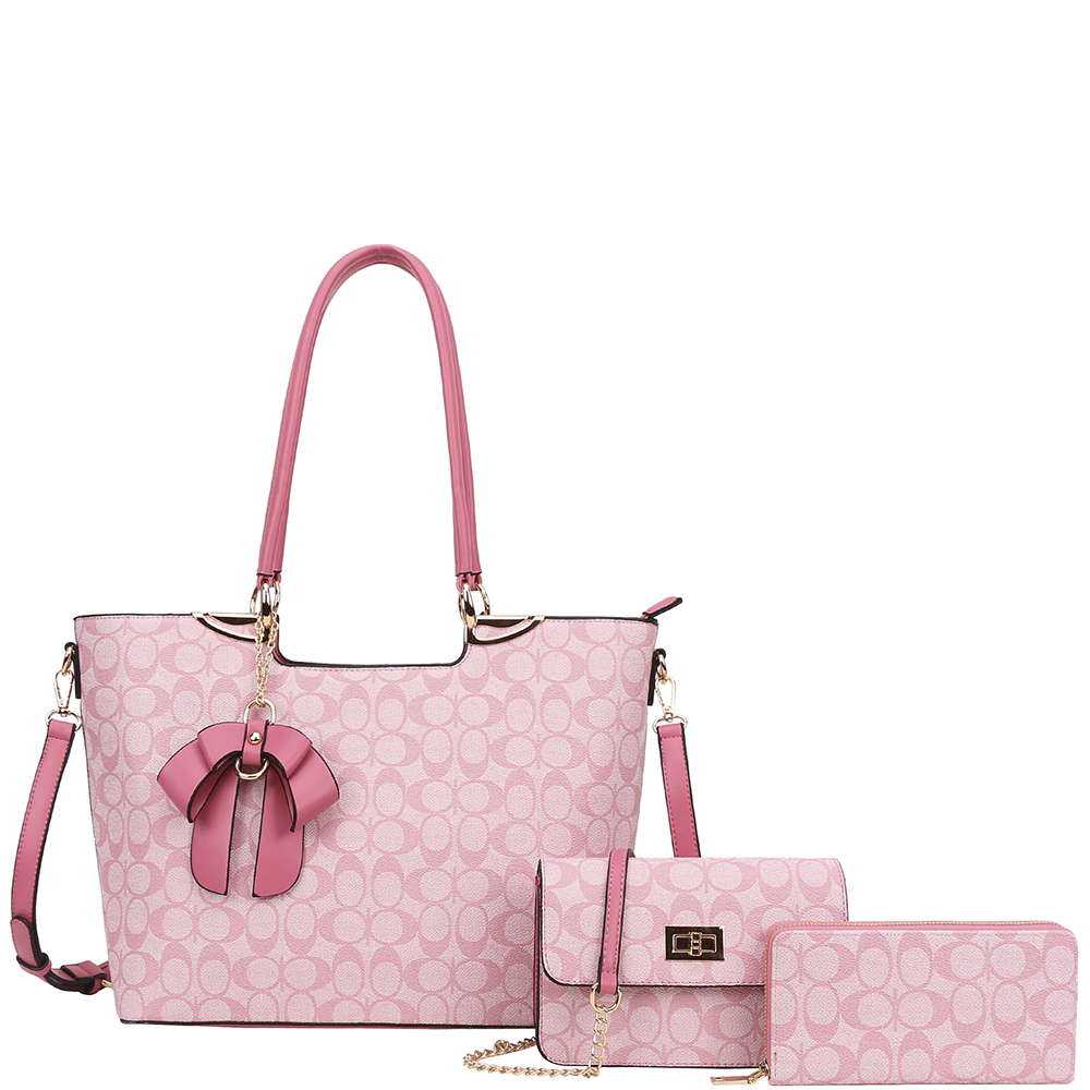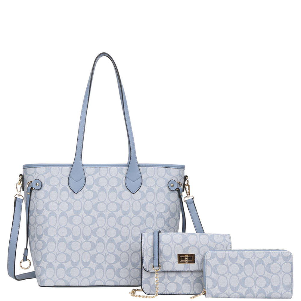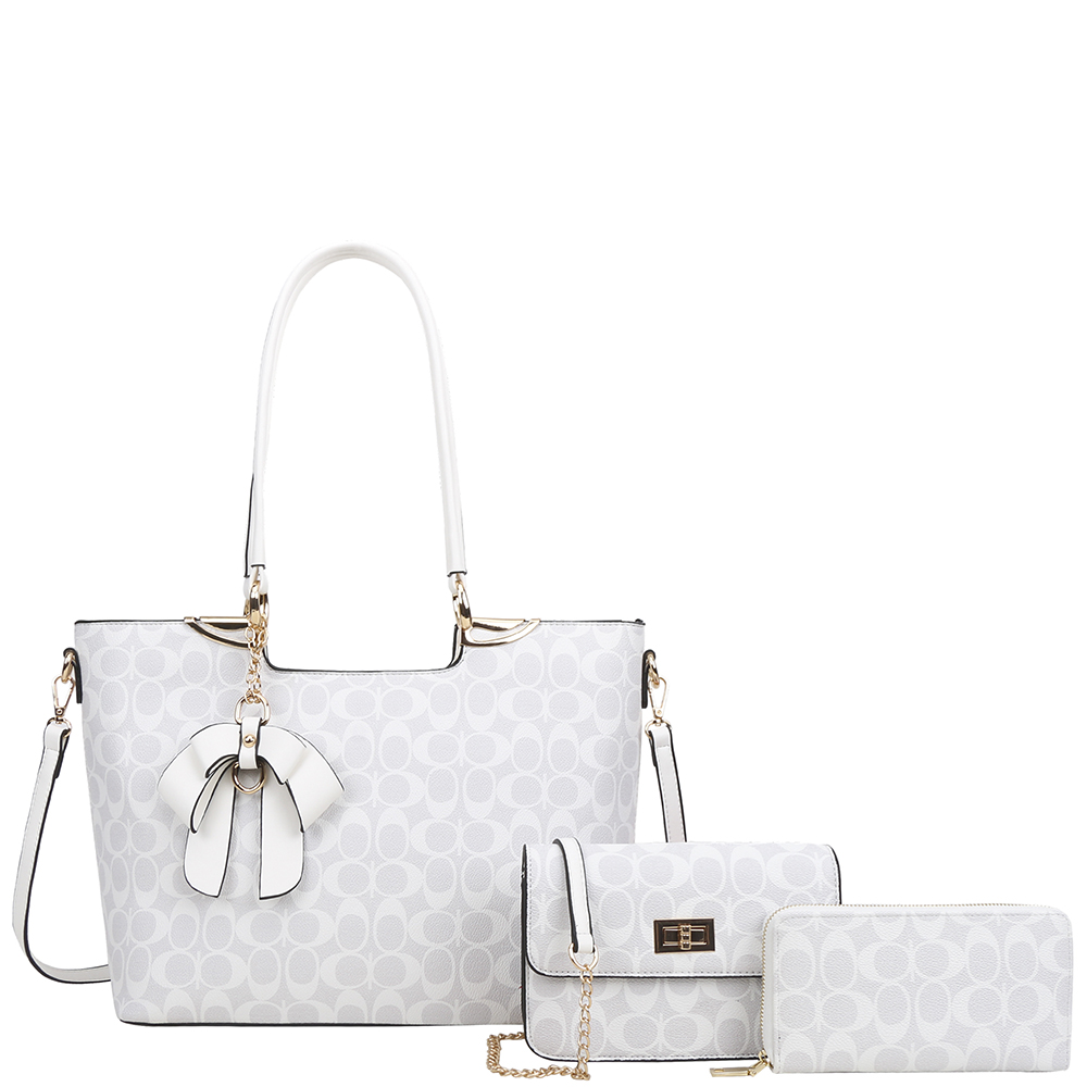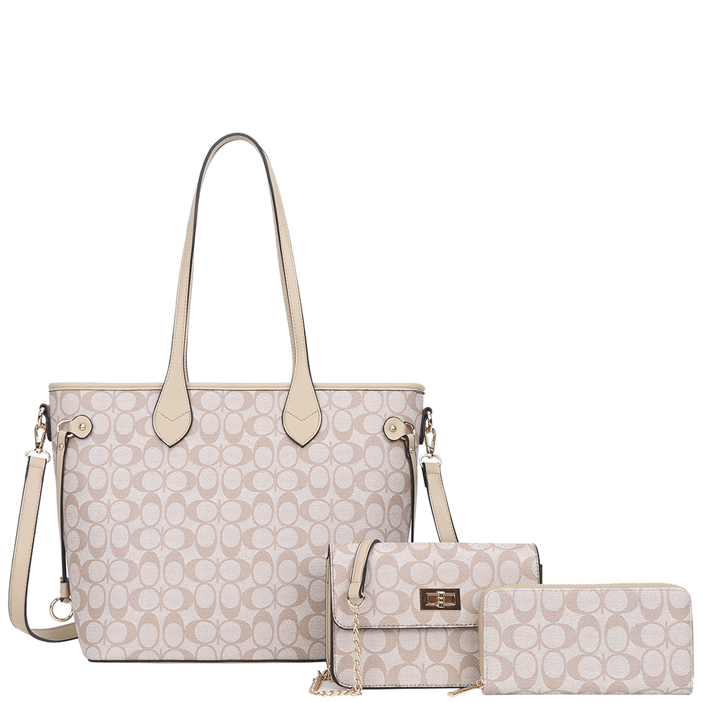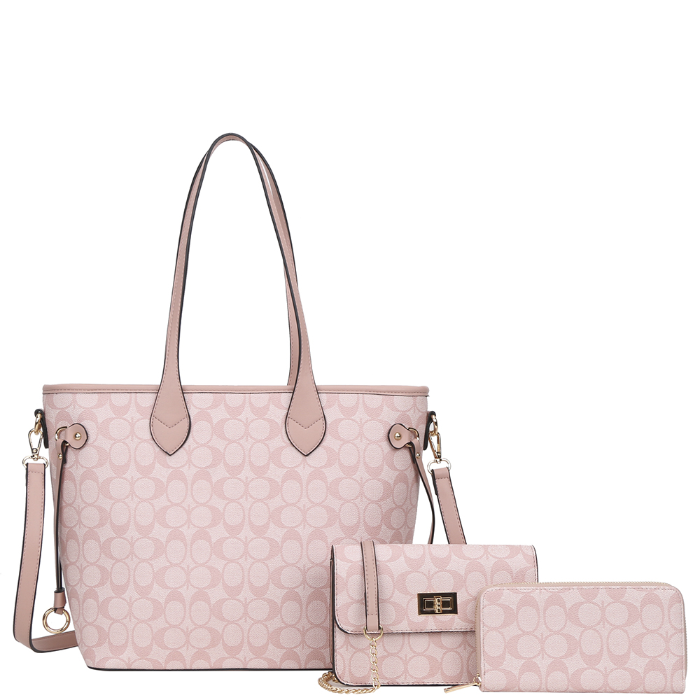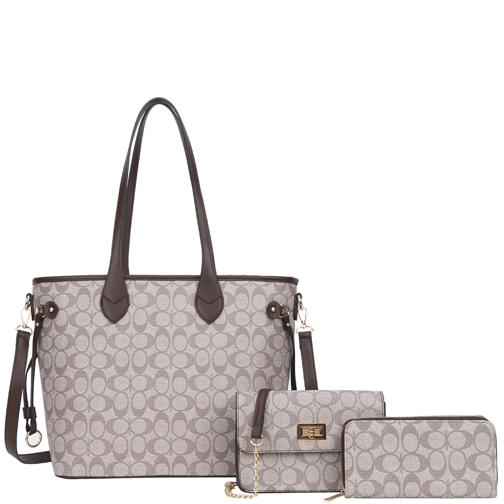 3IN1 OVAL PATTERN PRINT TOTE W CROSSBODY AND WALLET SET