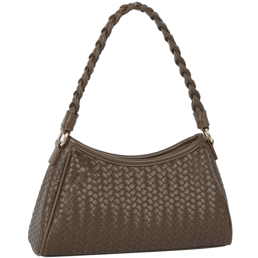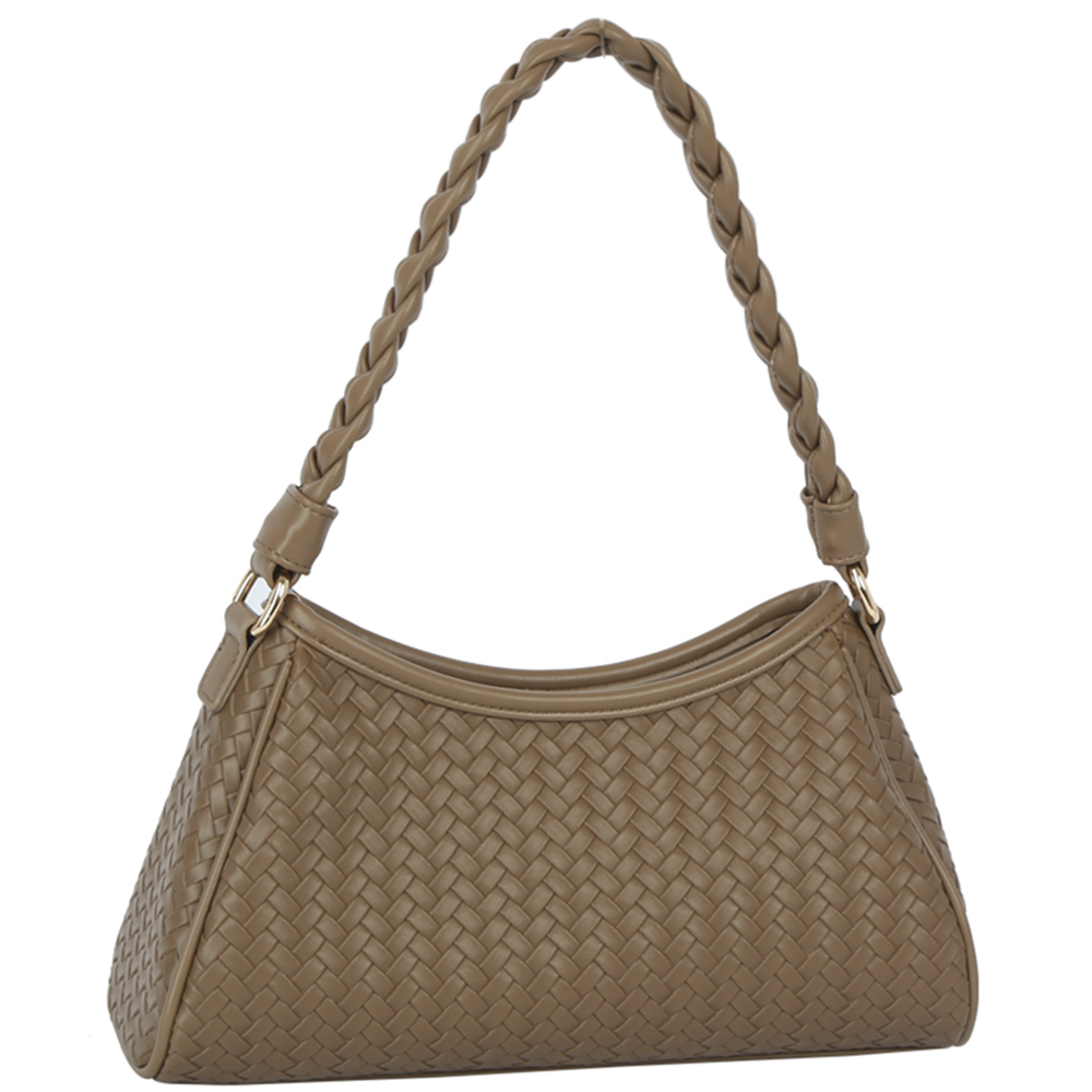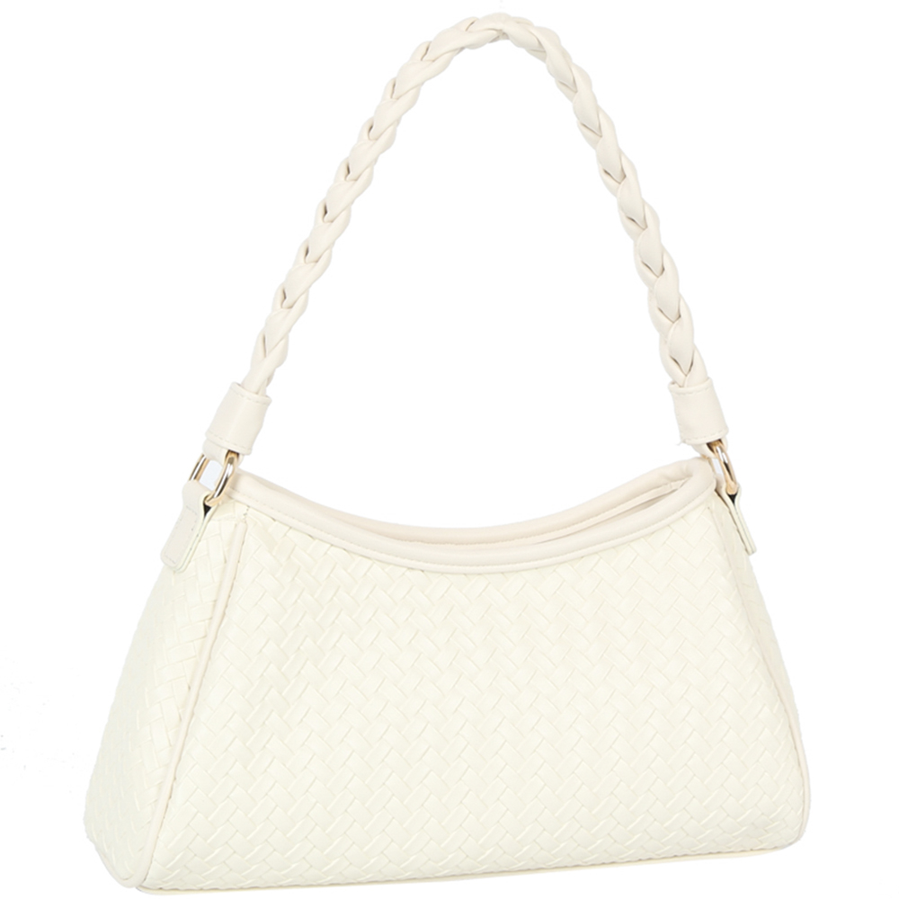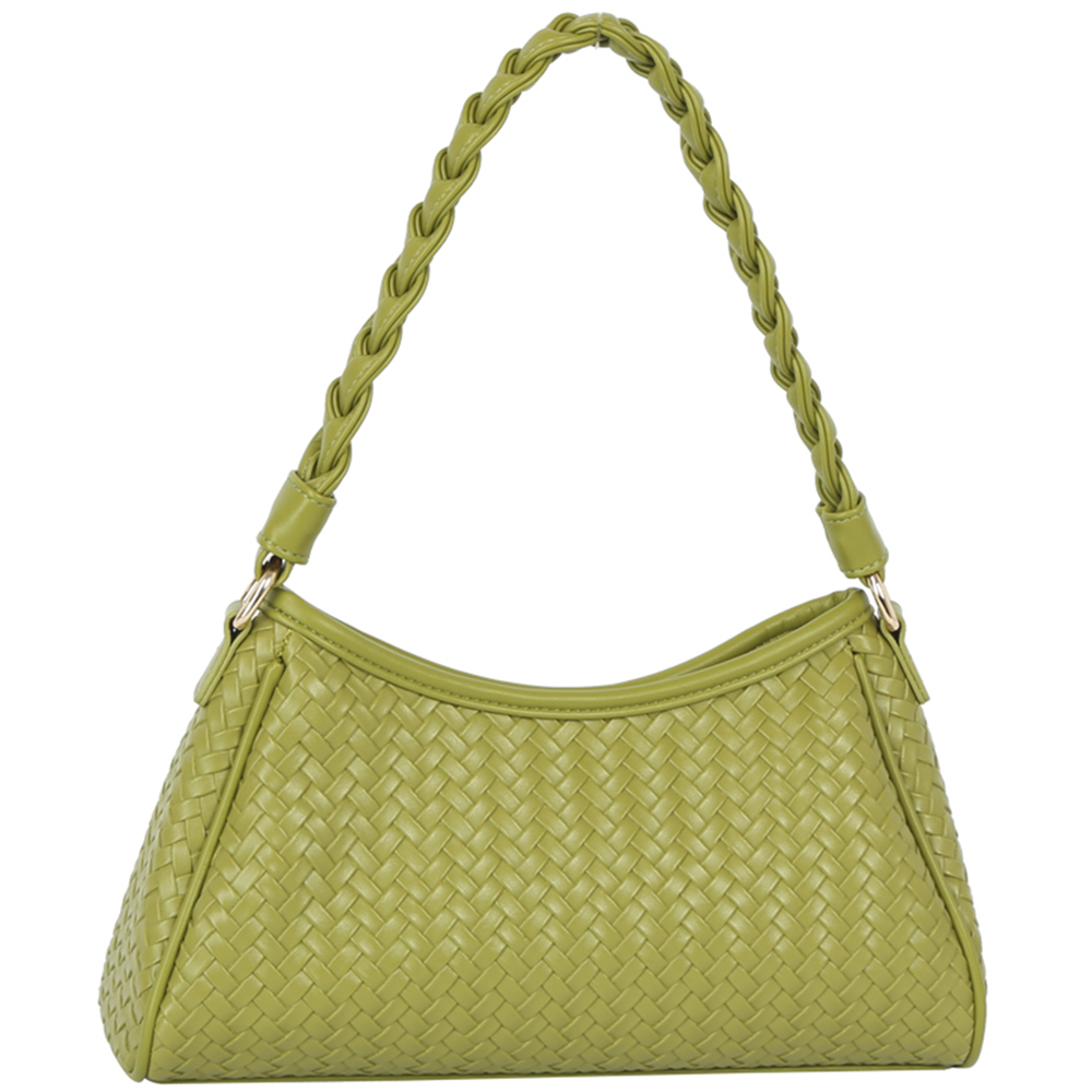 CHIC WOVEN TEXTURE DESIGN BRAIDED HANDLE SHOULDER BAG