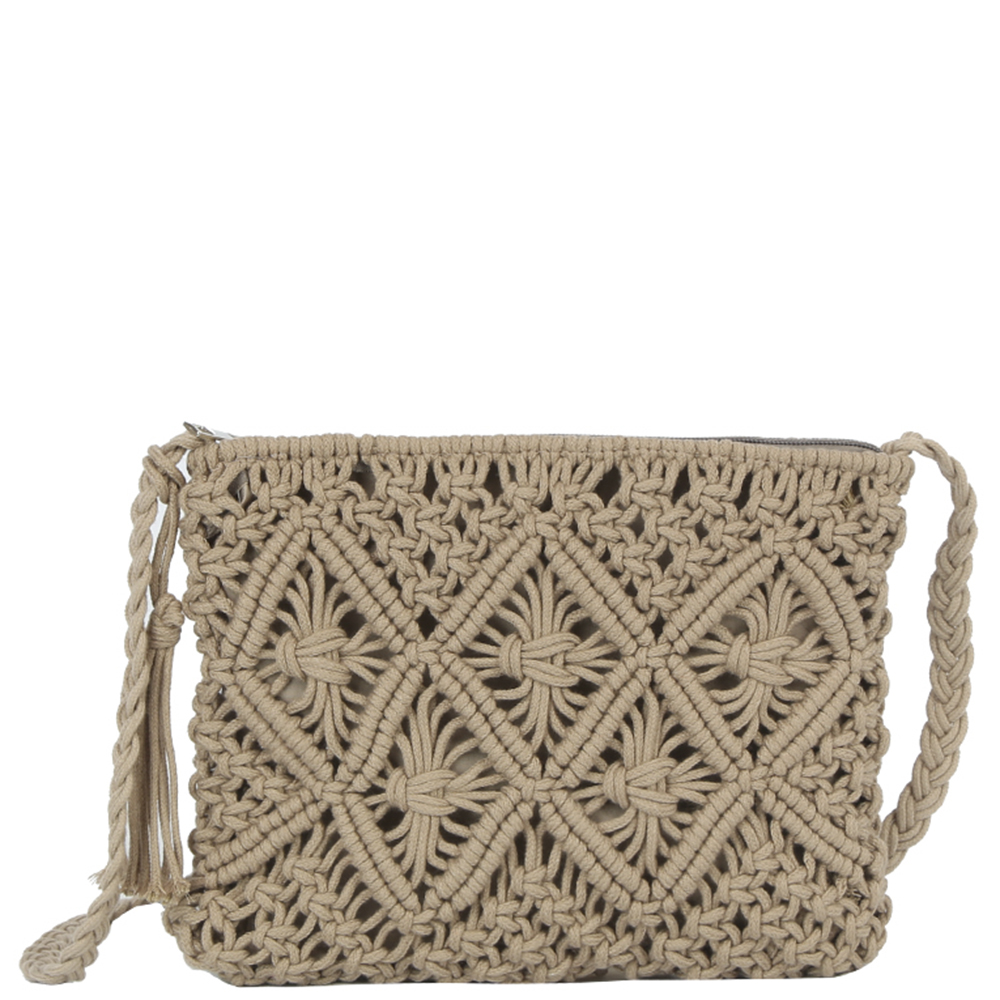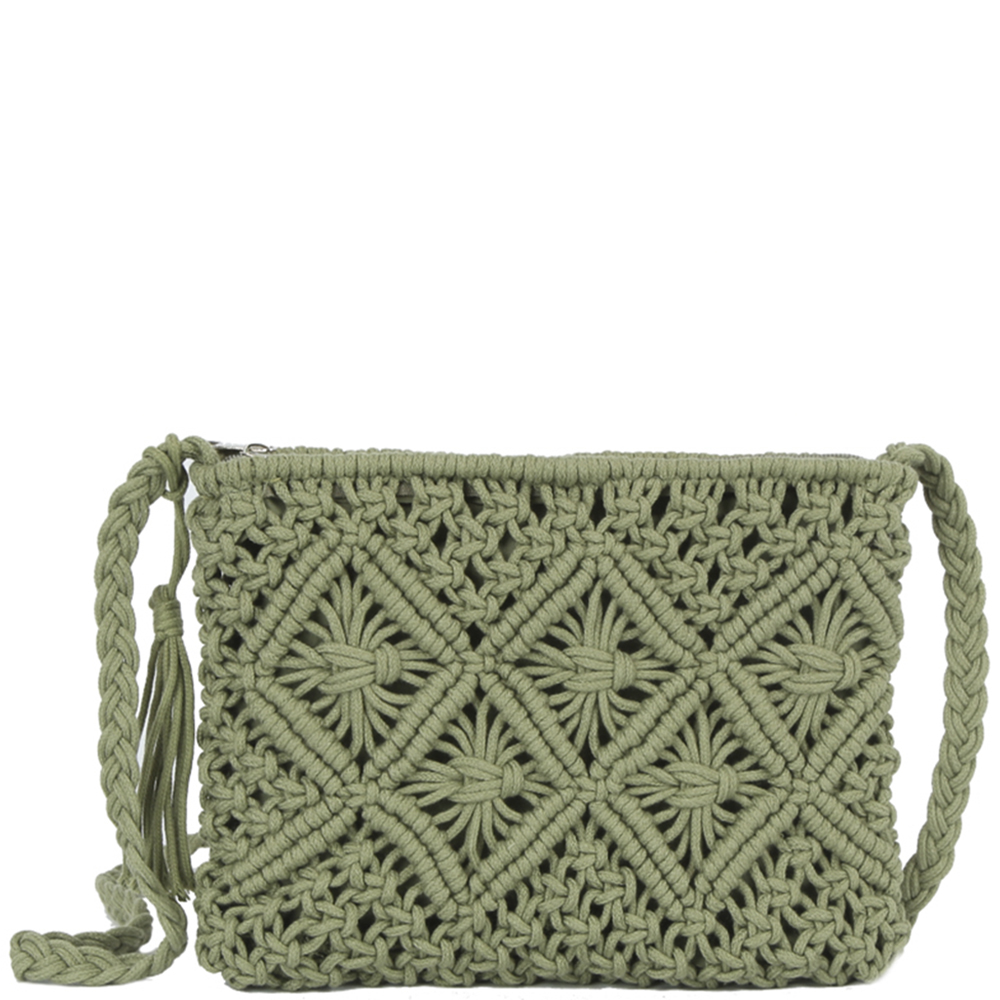WOVEN DESIGN TASSEL CROSSBODY BAG
