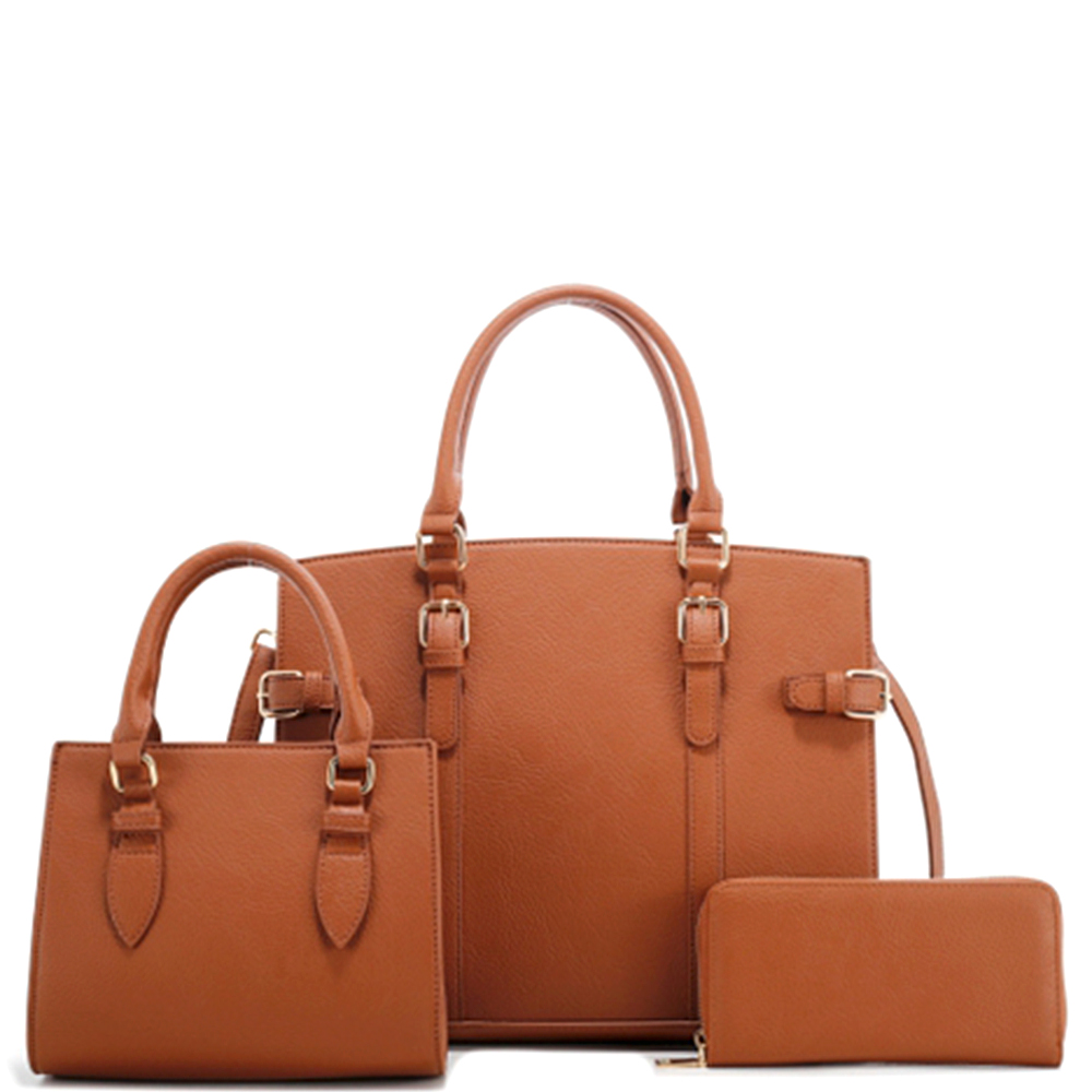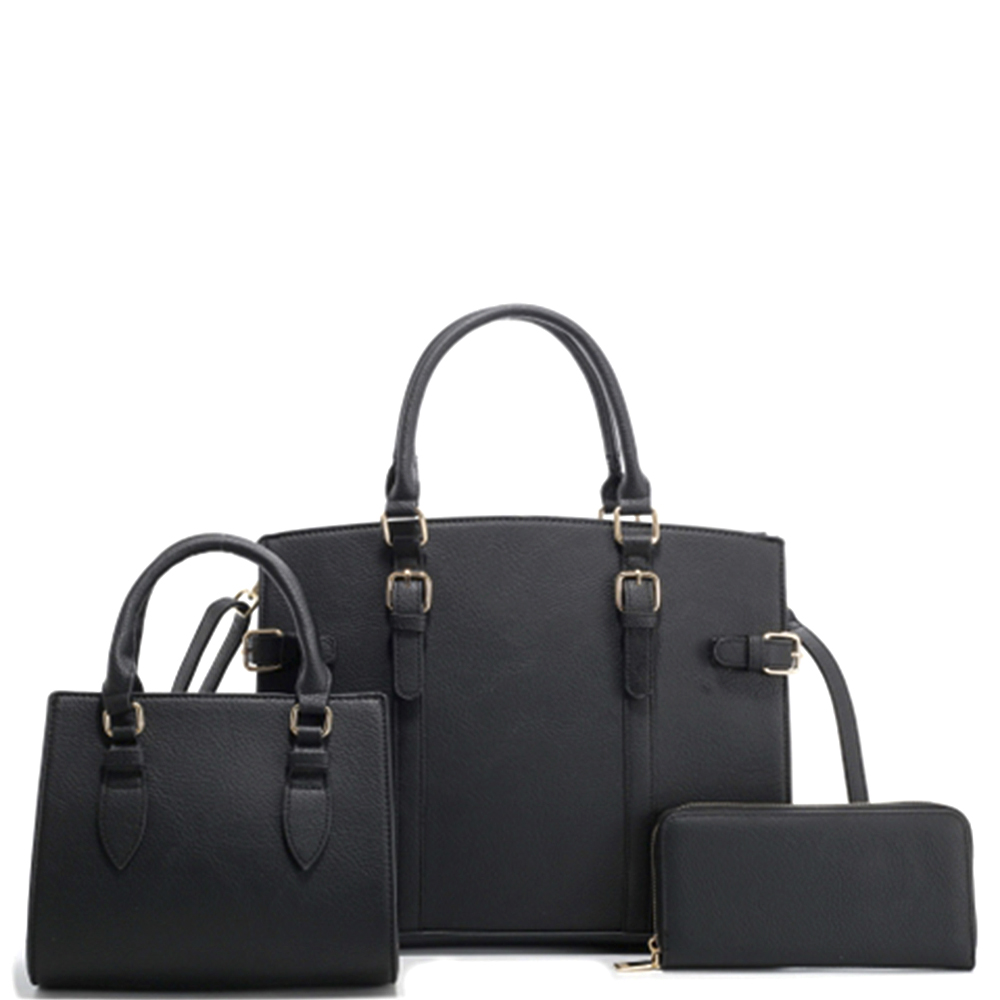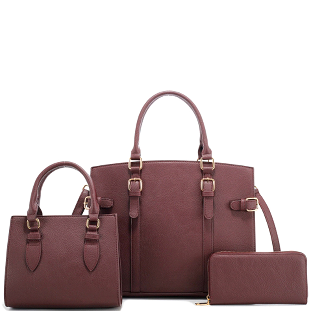 3IN1 BUCKLE DESIGN HANDLE SATCHEL W MINI BAG AND WALLET SET