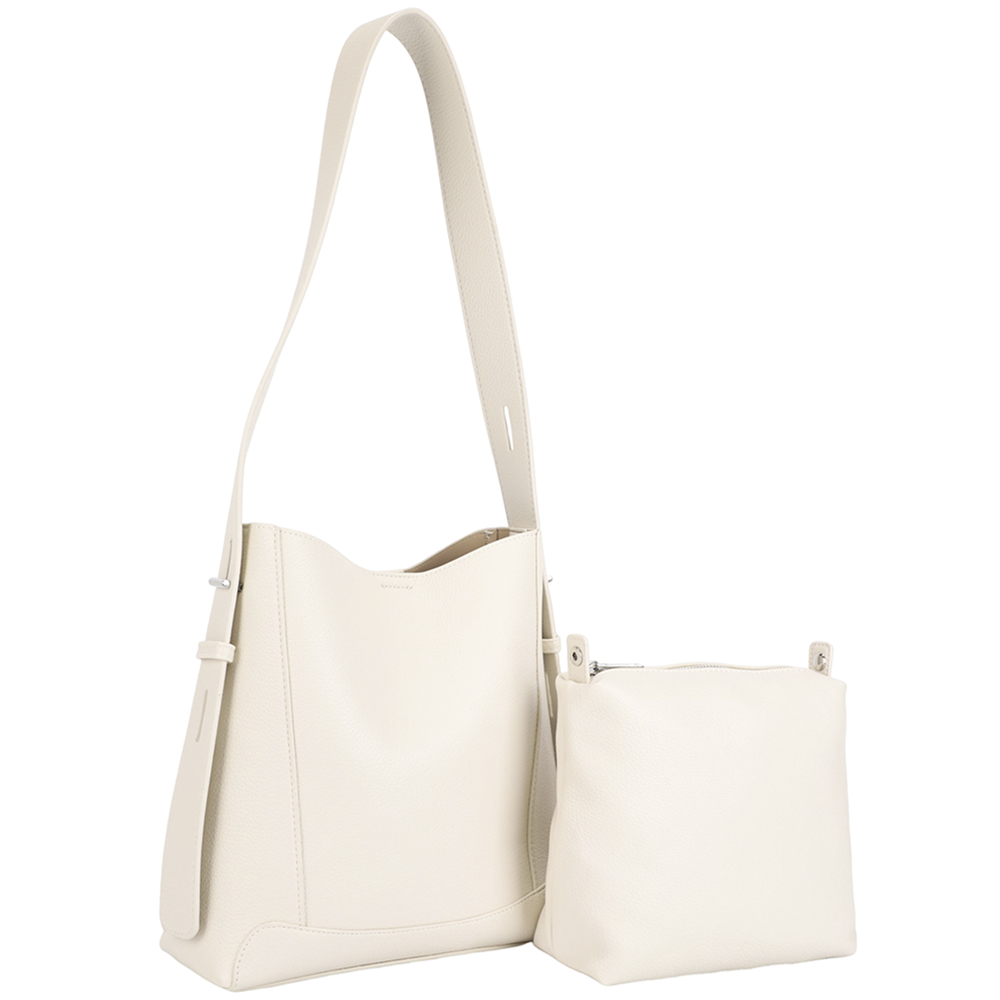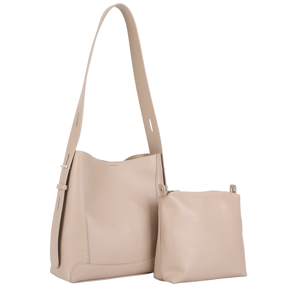 2IN1 PLAIN STYLISH SHOULDER BAG W ZIPPER POUCH SET