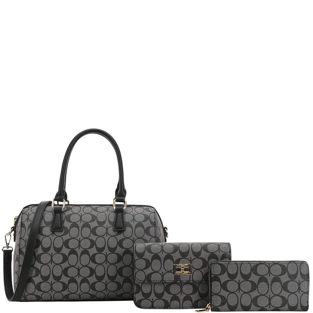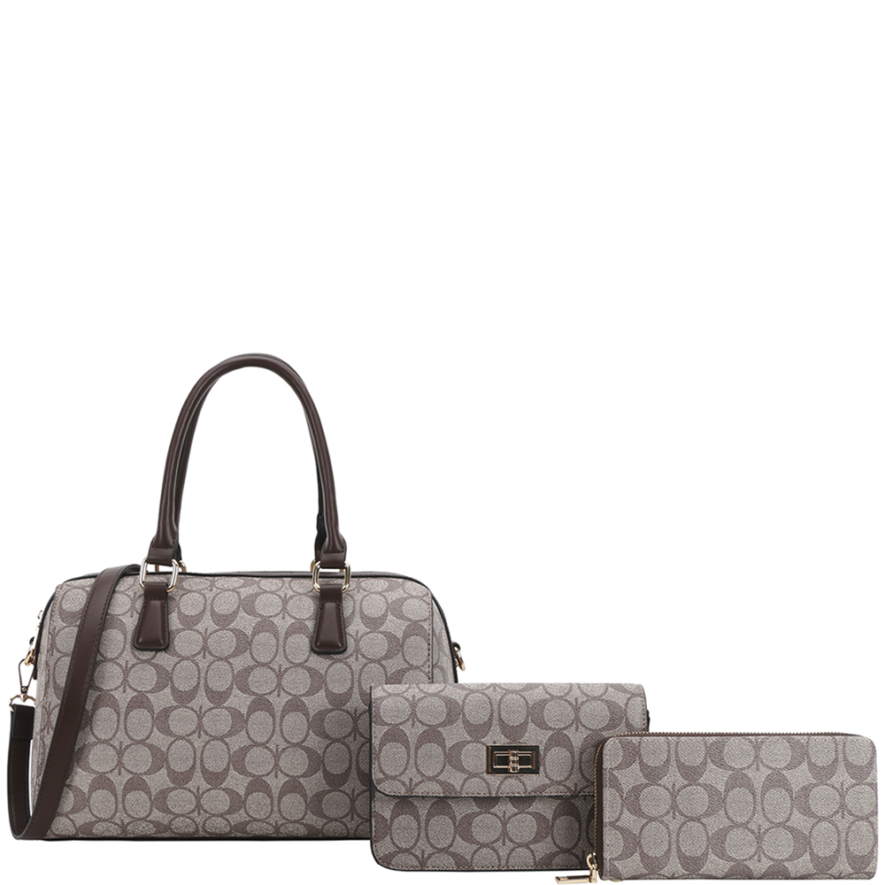 3IN1 OVAL PRINT SATCHEL W CROSSBODY AND WALLET SET
