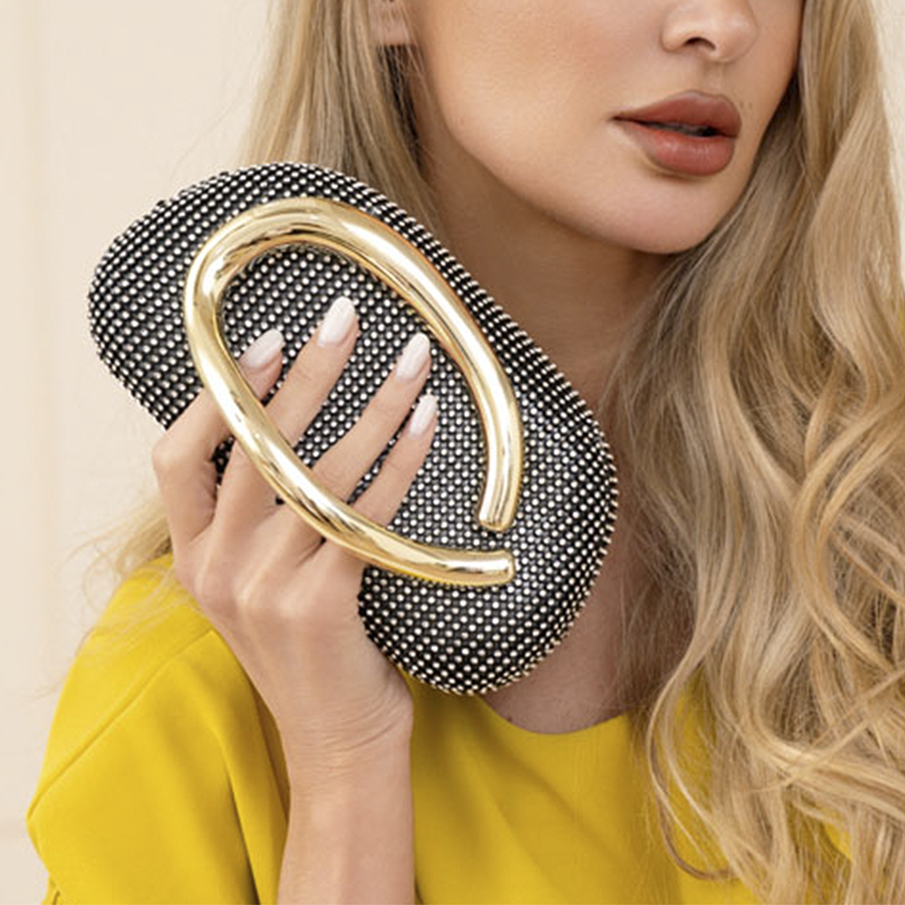 CURVED FLAP METAL HANDLE EVENING CLUTCH BAG