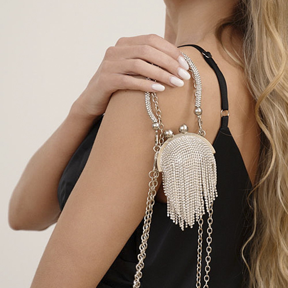 RHINESTONE DANGLE HANDLE MINI CROSSBODY BAG