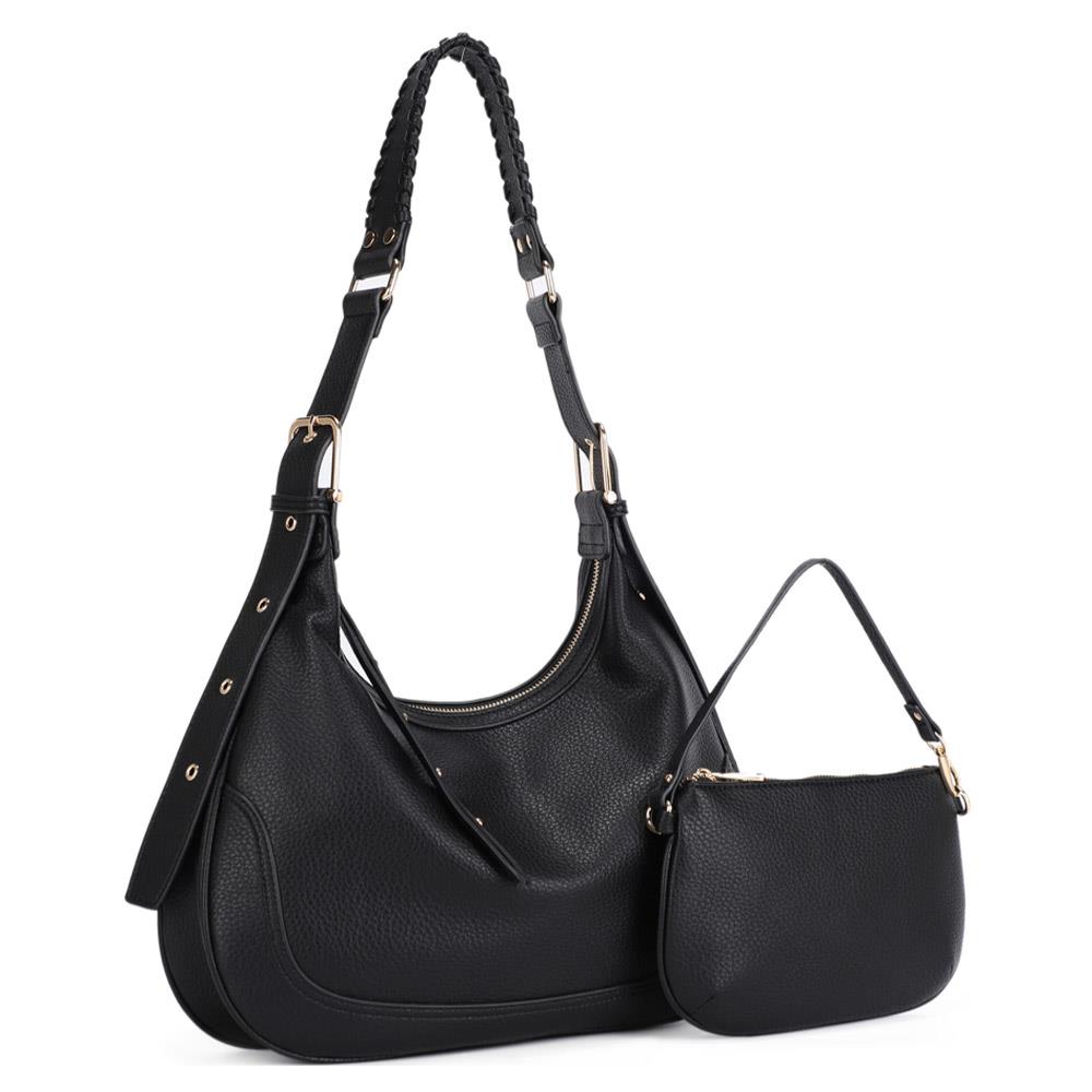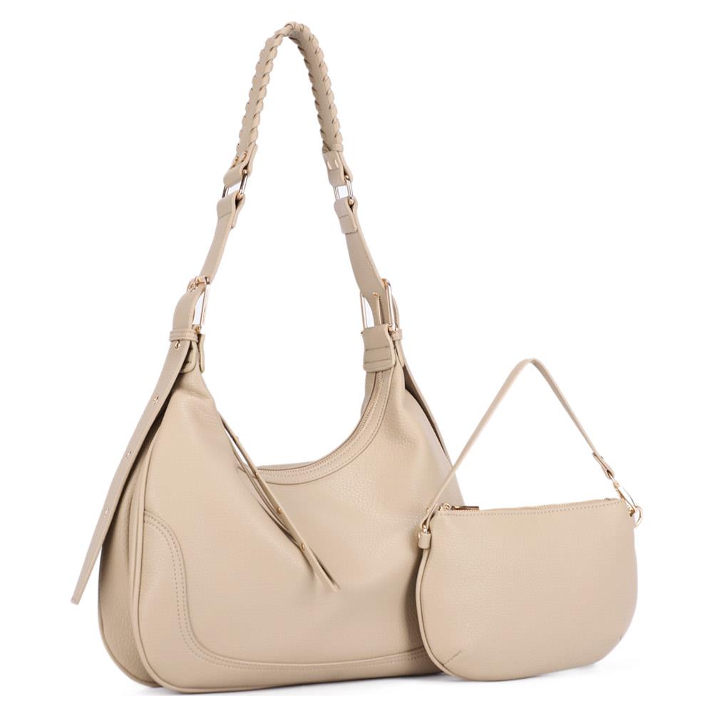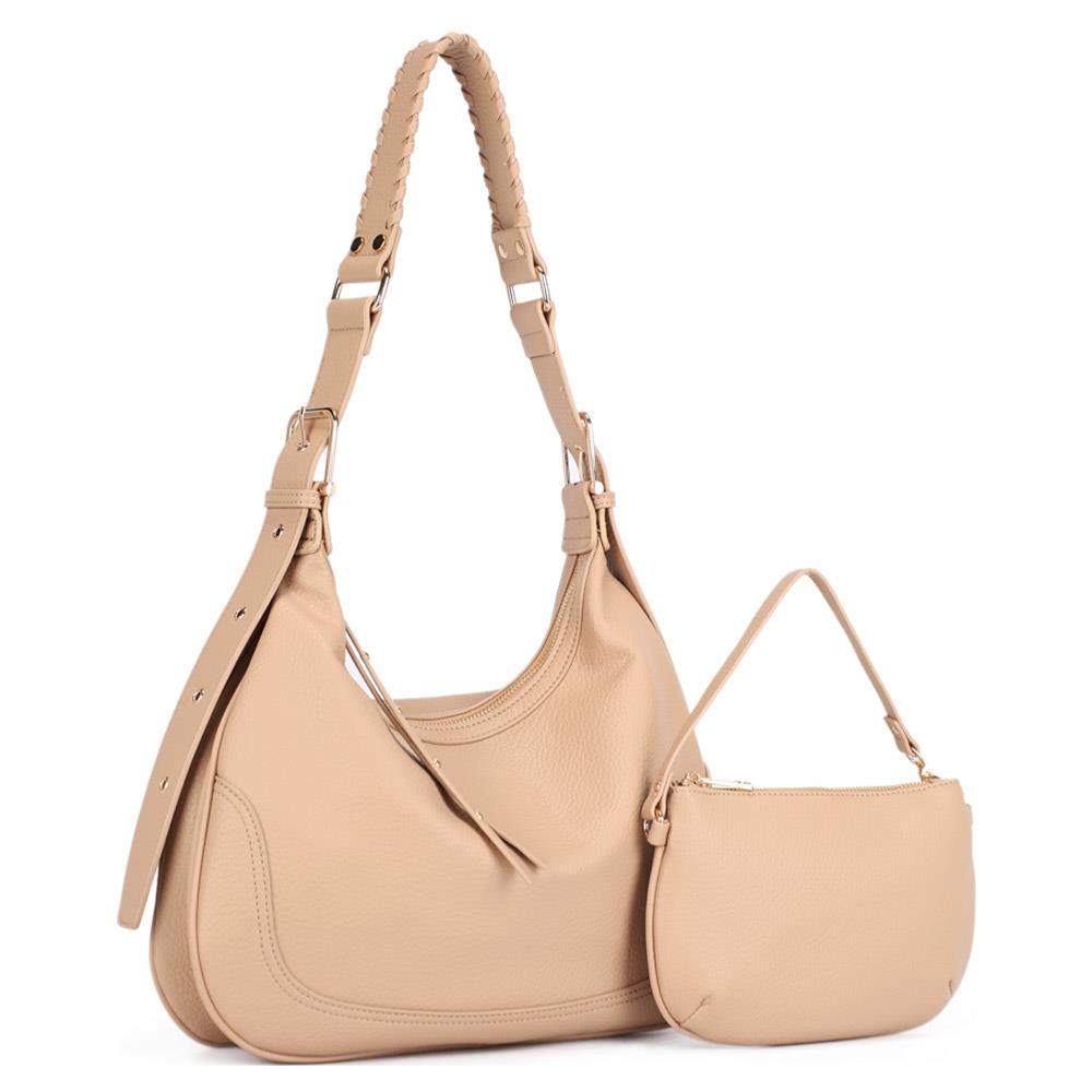 2IN1 SMOOTH SHOULDER HOBO BAG W HAND STRAP POUCH SET