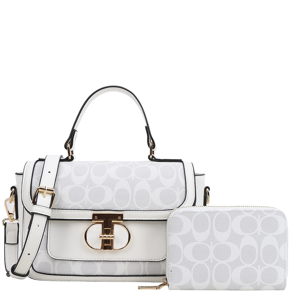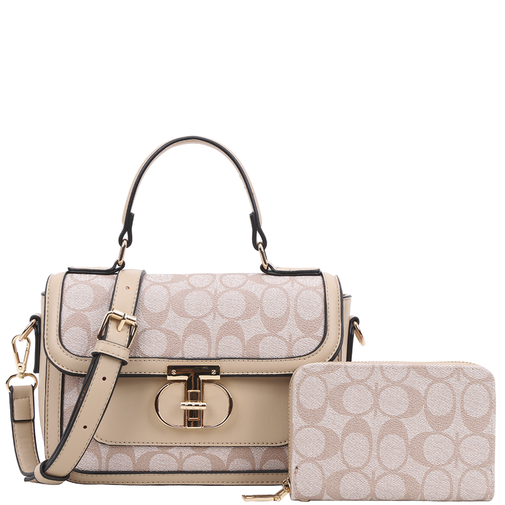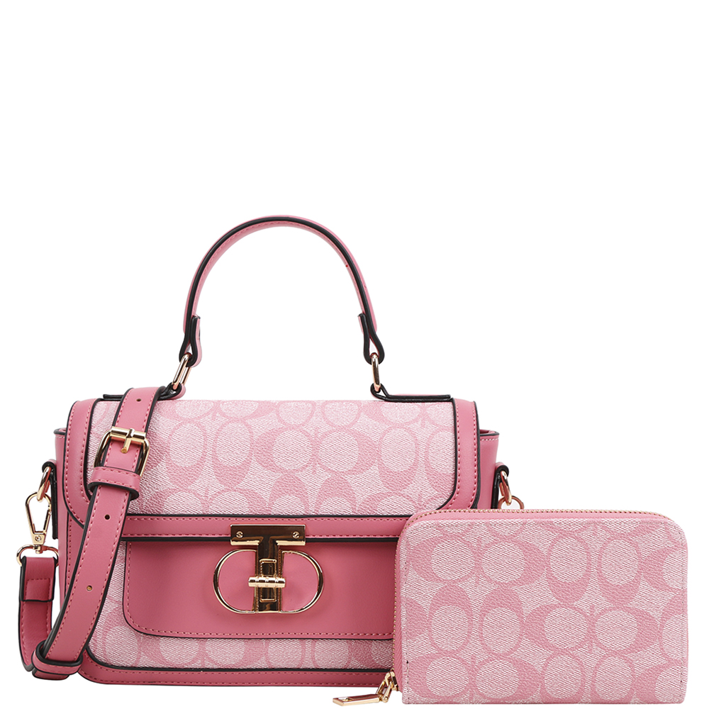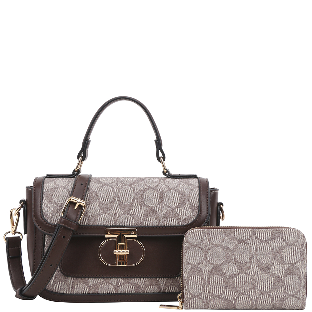 2IN1 OVAL PRINT DESIGN SATCHEL W WALLET SET
