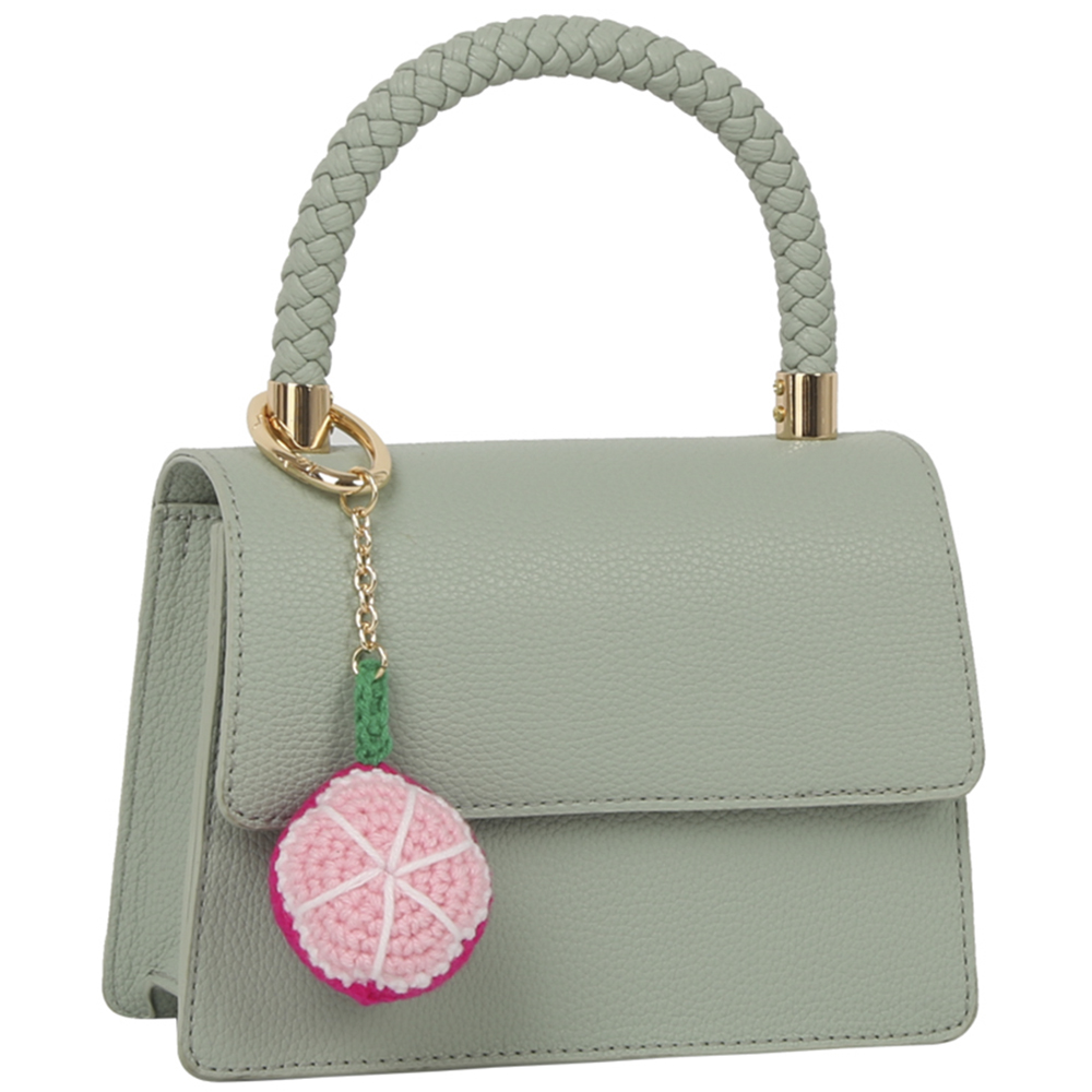 TEXTURED DESIGN HANDLE BAG W CHERRY KEYCHAIN