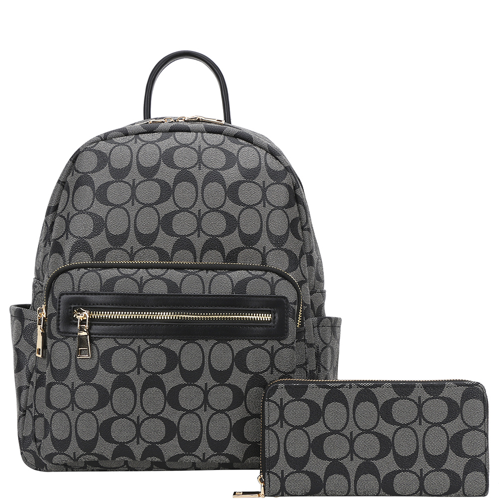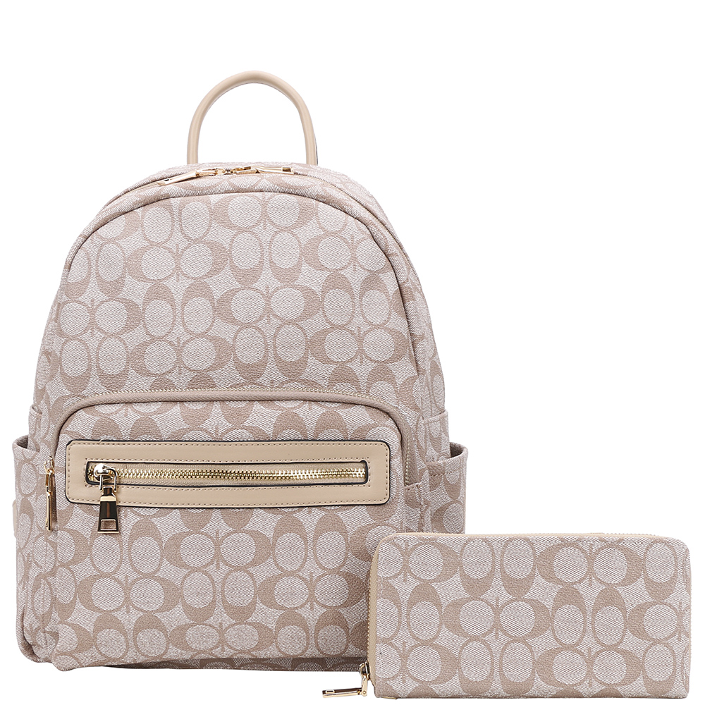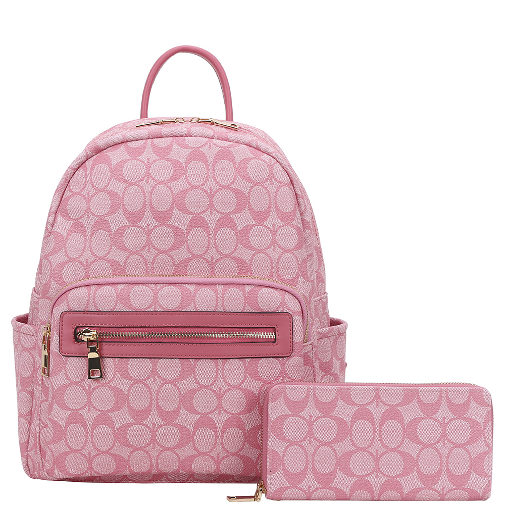 2IN1 OVAL PATTERN DESIGN HANDLE ZIPPER BACKPACK W WALLET SET