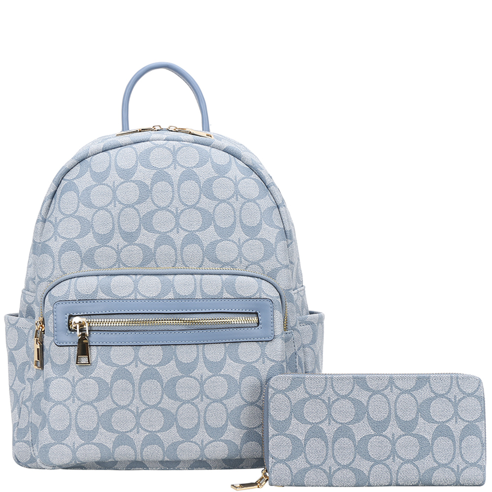 2IN1 OVAL PATTERN HANDLE BACKPACK W WALLET SET