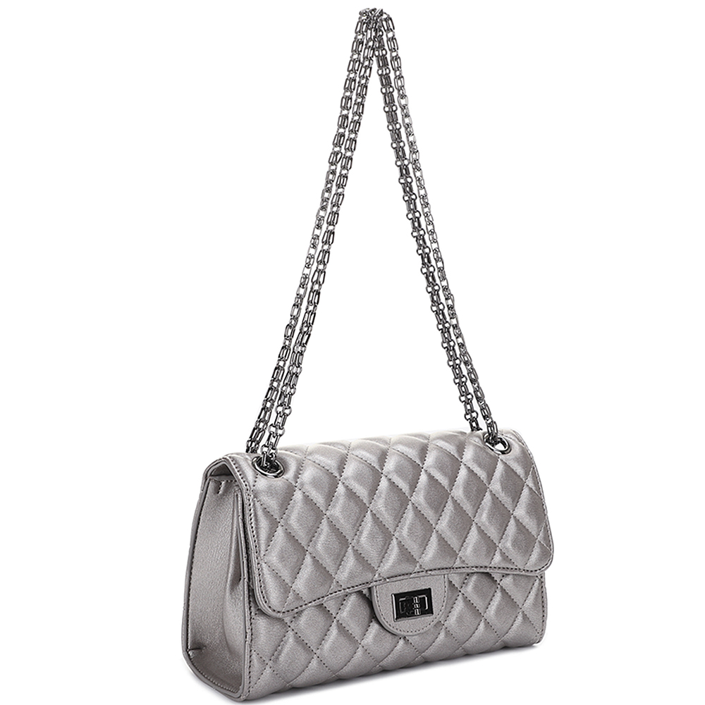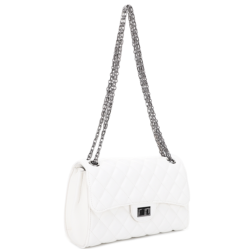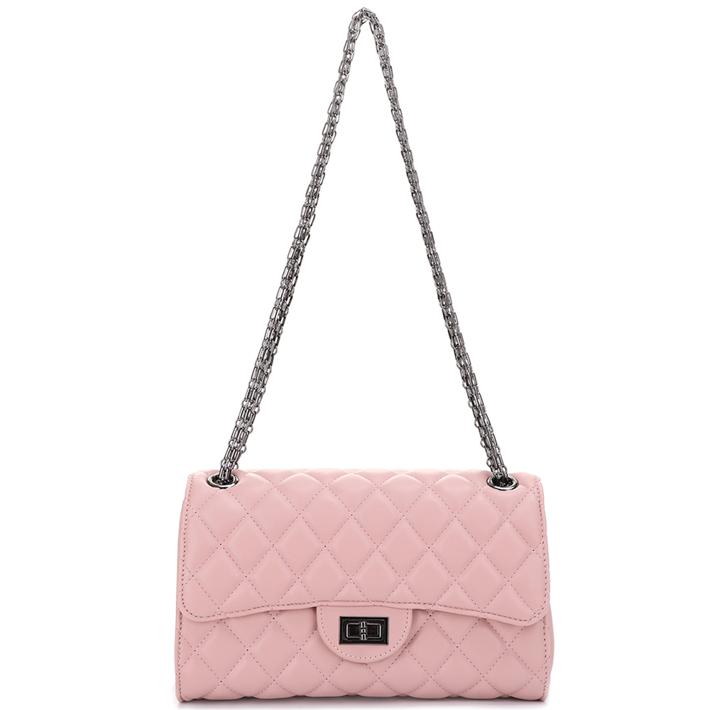 QUILTED JELLY BAG WITH METAL CHAIN CROSS BODY